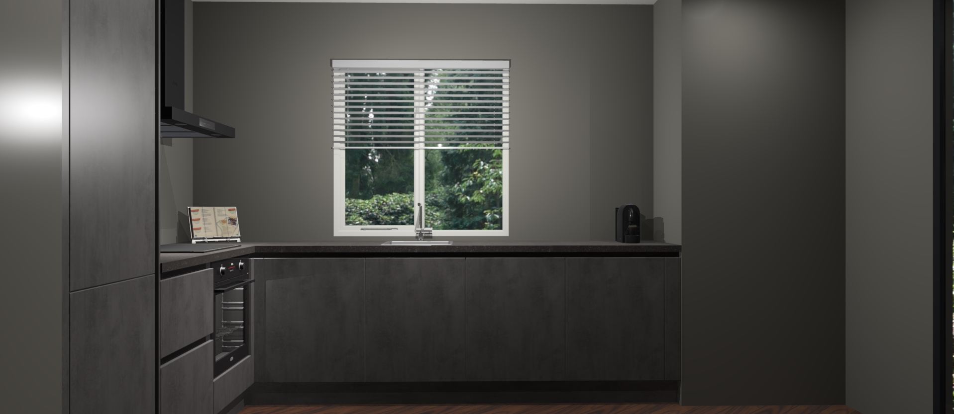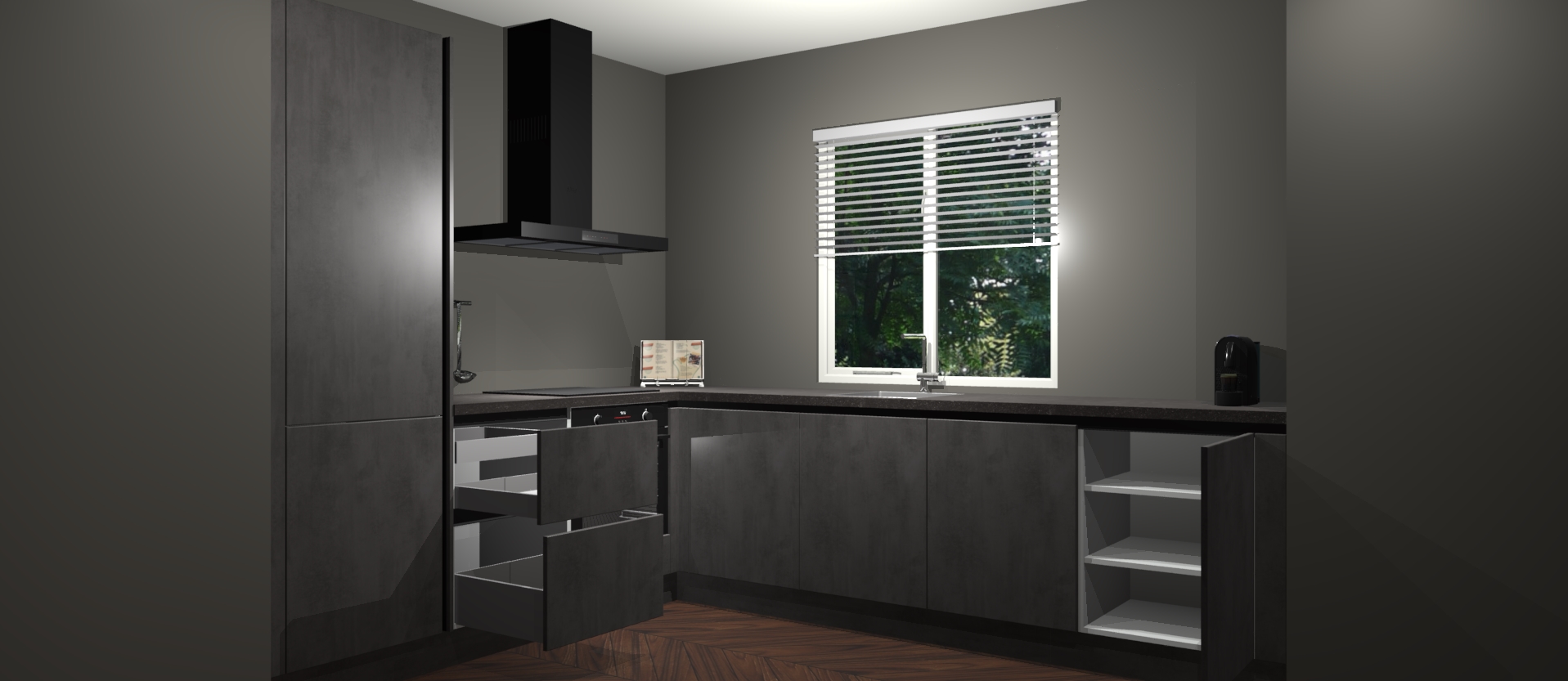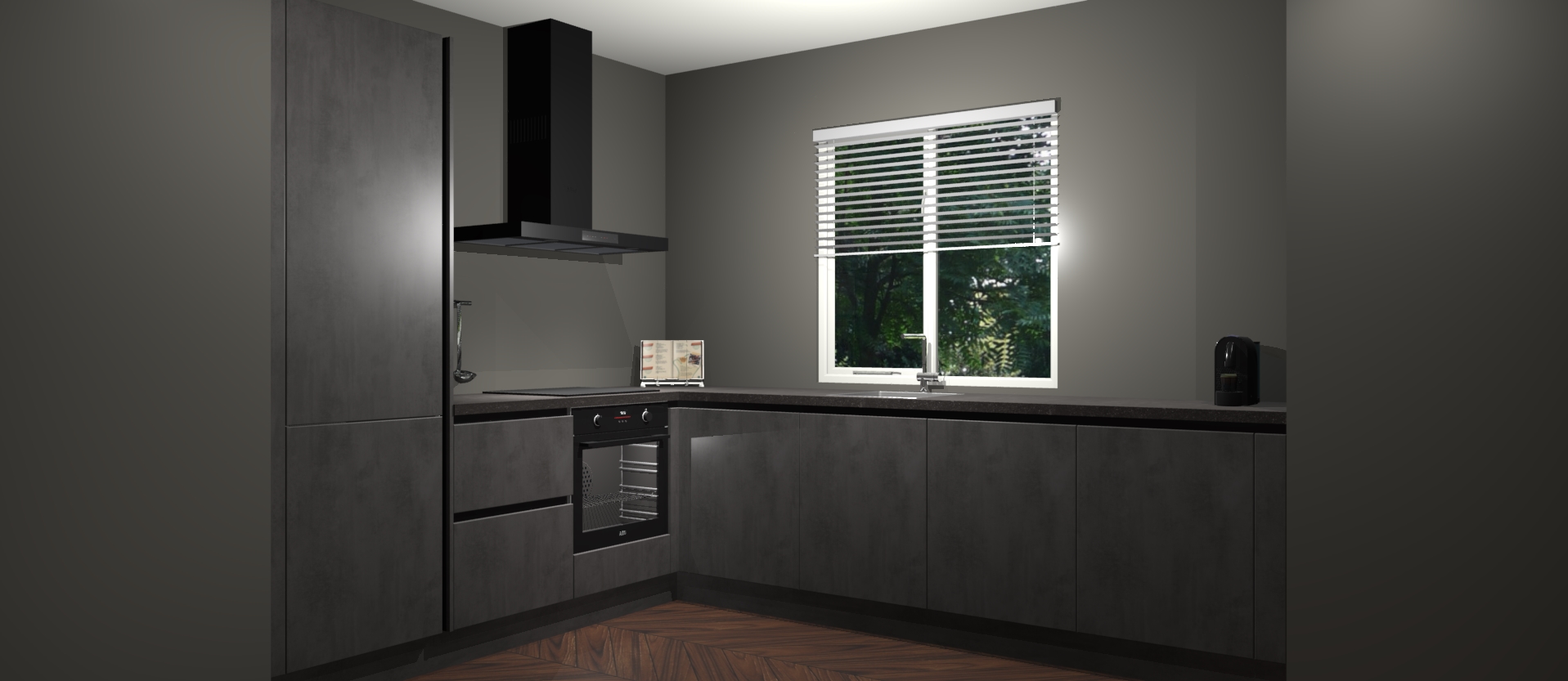 Met de Beton Antraciet keuken Doha Maakt u van uw keuken het pronkstuk van uw huis. Stijlvol en toch praktisch, de nieuwste look voor wie meer waarde en charme aan zijn huis wil toevoegen. Met prachtige zwarte handgrepen die zich lenen voor een klassieke stijlbron, zal u niet teleurgesteld zijn in het resultaat. De soft-close deurscharnieren geven een gevoel van luxe omdat ze zachtjes bewegen zonder storende of krakende geluiden te veroorzaken.