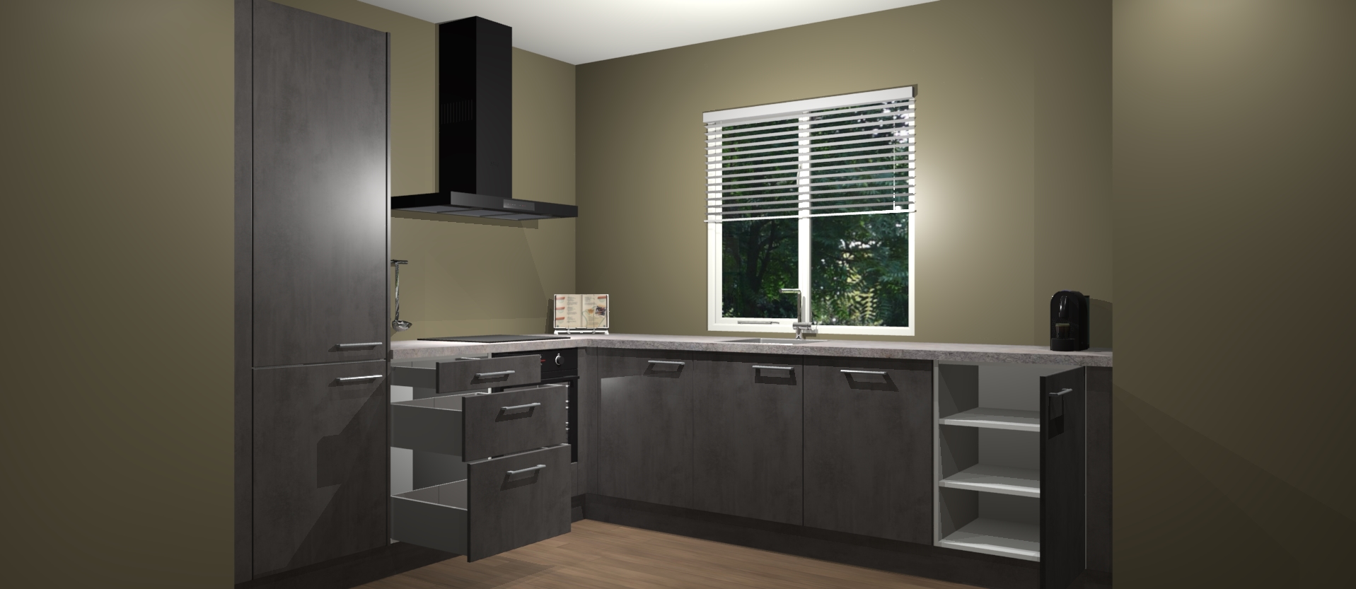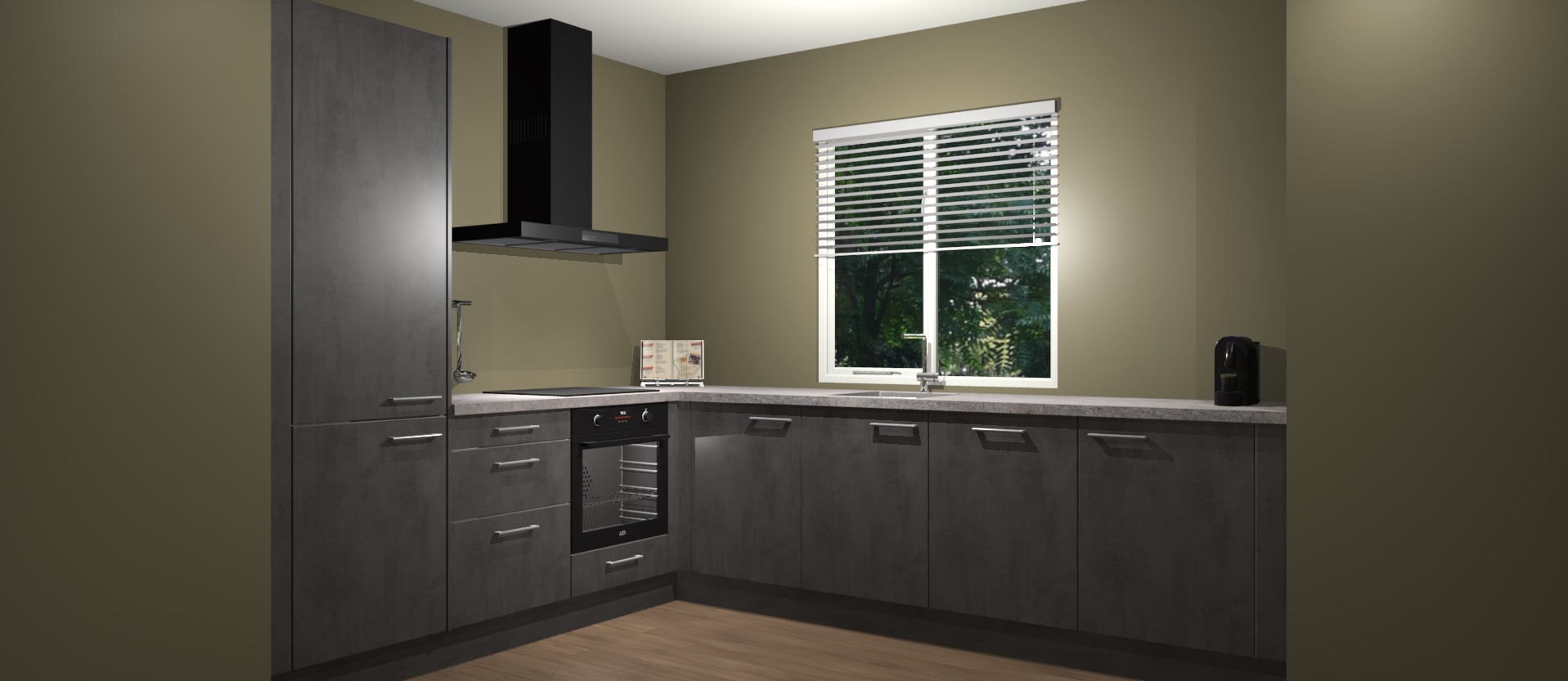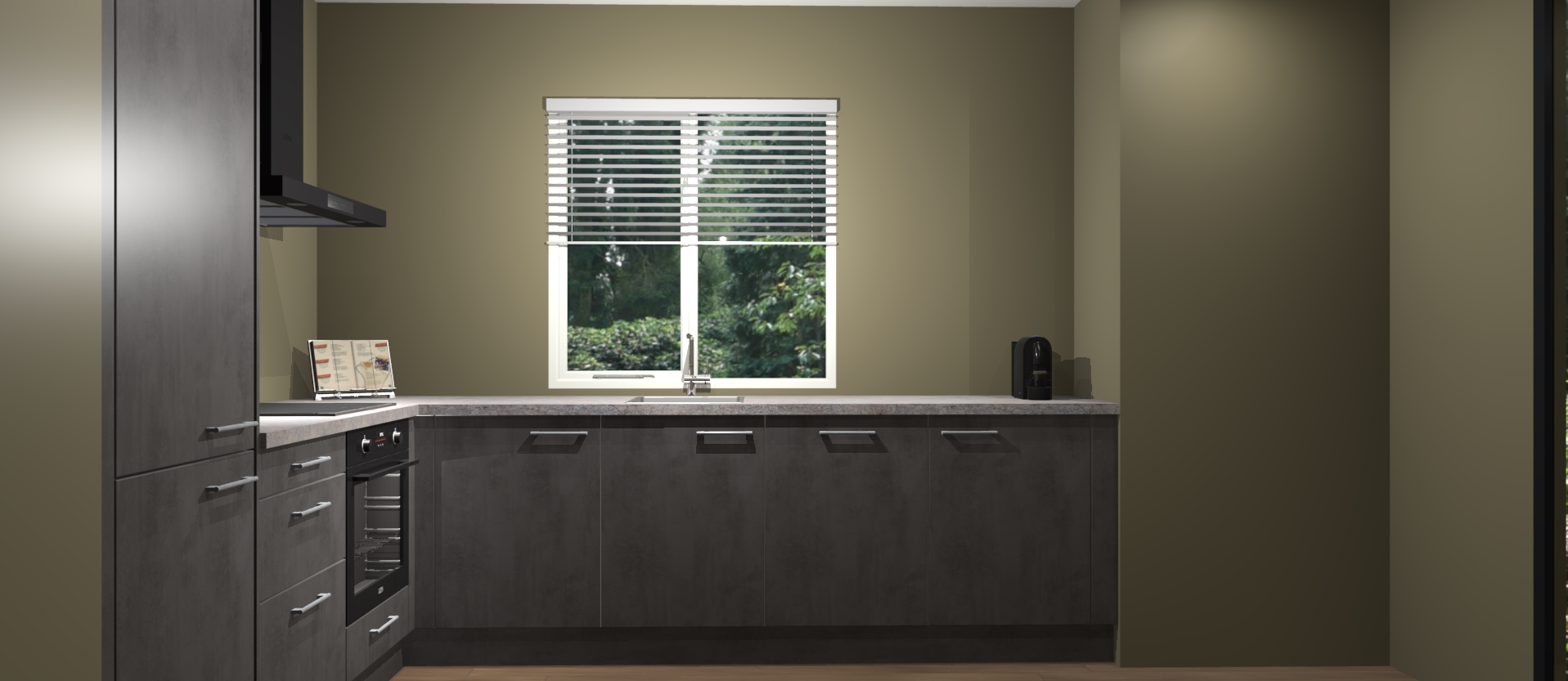 Met de Beton Antraciet keuken Doha Maakt u van uw keuken het pronkstuk van uw huis. Stijlvol en toch praktisch, de nieuwste look voor wie meer waarde en charme aan zijn huis wil toevoegen. Met prachtige zwarte handgrepen die zich lenen voor een klassieke stijlbron, zal u niet teleurgesteld zijn in het resultaat. De soft-close deurscharnieren geven een gevoel van luxe omdat ze zachtjes bewegen zonder storende of krakende geluiden te veroorzaken.