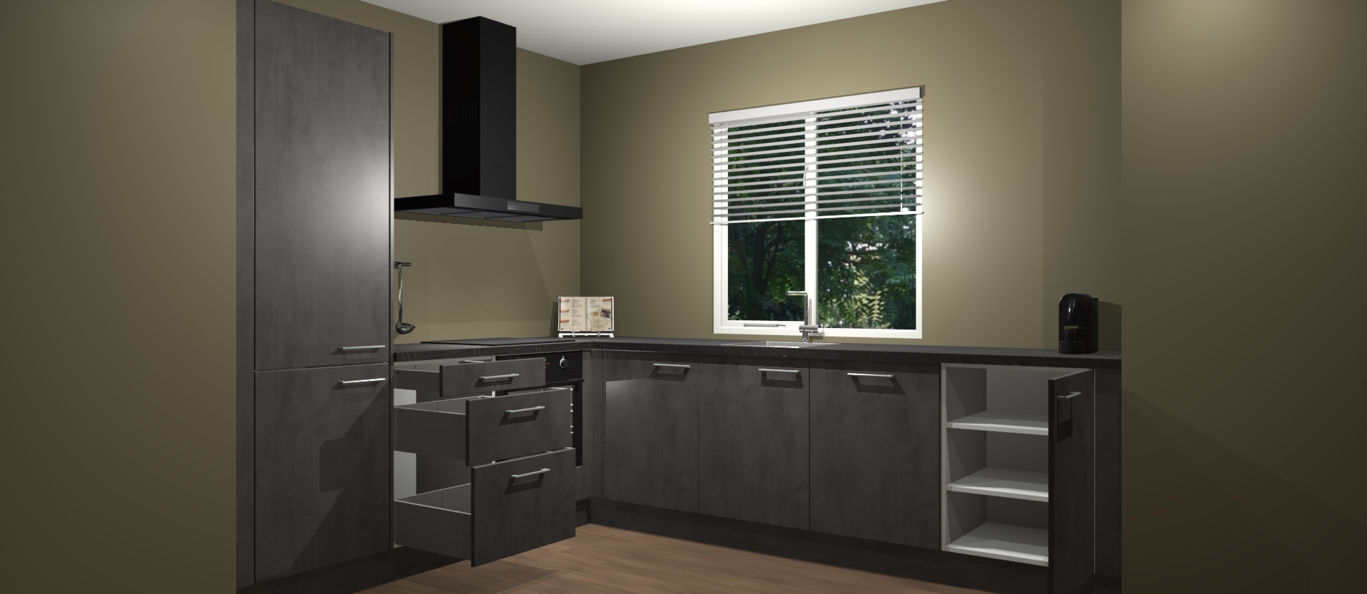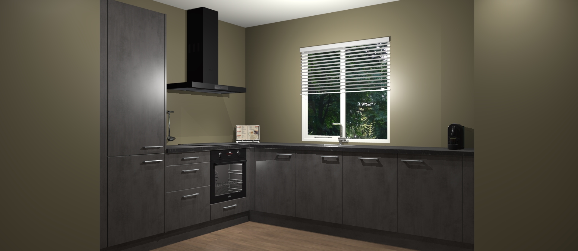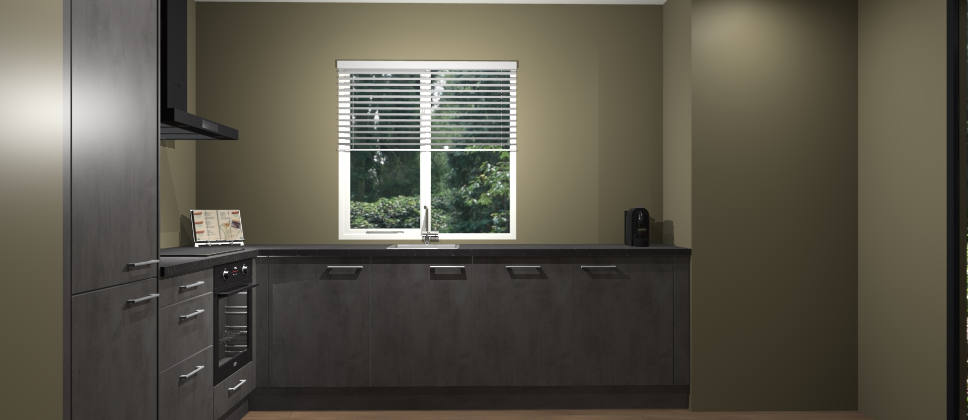 Met de Beton Antraciet keuken Doha Maakt u van uw keuken het pronkstuk van uw huis. Stijlvol en toch praktisch, de nieuwste look voor wie meer waarde en charme aan zijn huis wil toevoegen. Met prachtige zwarte handgrepen die zich lenen voor een klassieke stijlbron, zal u niet teleurgesteld zijn in het resultaat. De soft-close deurscharnieren geven een gevoel van luxe omdat ze zachtjes bewegen zonder storende of krakende geluiden te veroorzaken.