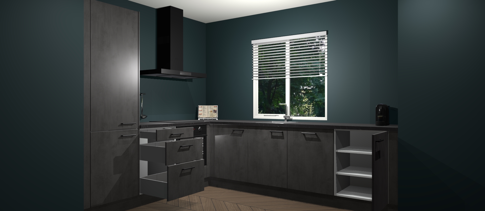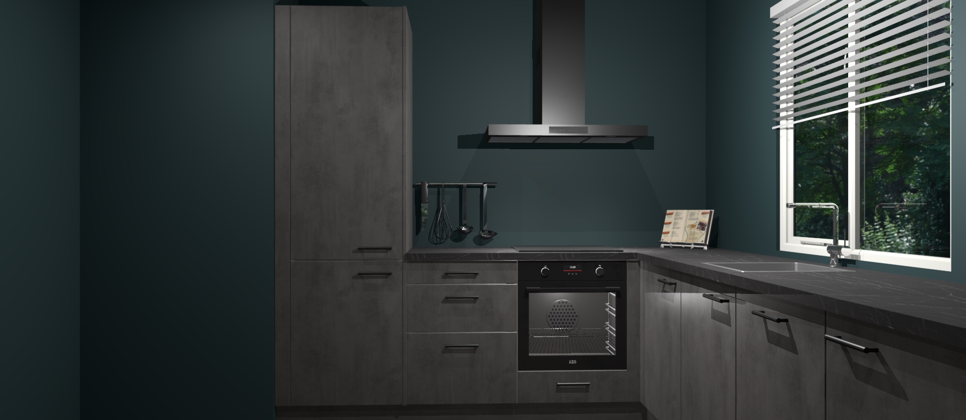 Maak kennis met de Beton Antraciet keuken Doha - de perfecte aanvulling voor uw moderne keuken! Ervaar tijdloos design, elegantie en een chique uitstraling met onze zwarte handgrepen, soft-close deuren en veel opbergruimte. Dit alles wordt aangeboden tegen een vaste lage prijs voor ongeëvenaarde Duitse keukenkwaliteit!
