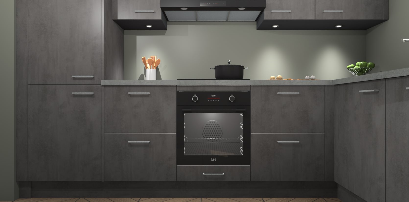 De Beton Antraciet keuken Geneve is uitgerust met 5 inbouwapparaten - een oven, inductiekookplaat, afzuigkap, vaatwasser en koelkast - voor al uw kook- en bewaarbehoeftes. U kunt deze apparaten desgewenst eenvoudig upgraden naar AEG of de oven omruilen voor een combimagnetron na het plaatsen van uw bestelling. En met de soft close deuren, voldoende opbergruimte en kasten die voorgemonteerd worden geleverd, bent u in een mum van tijd klaar om heerlijke maaltijden te bereiden!