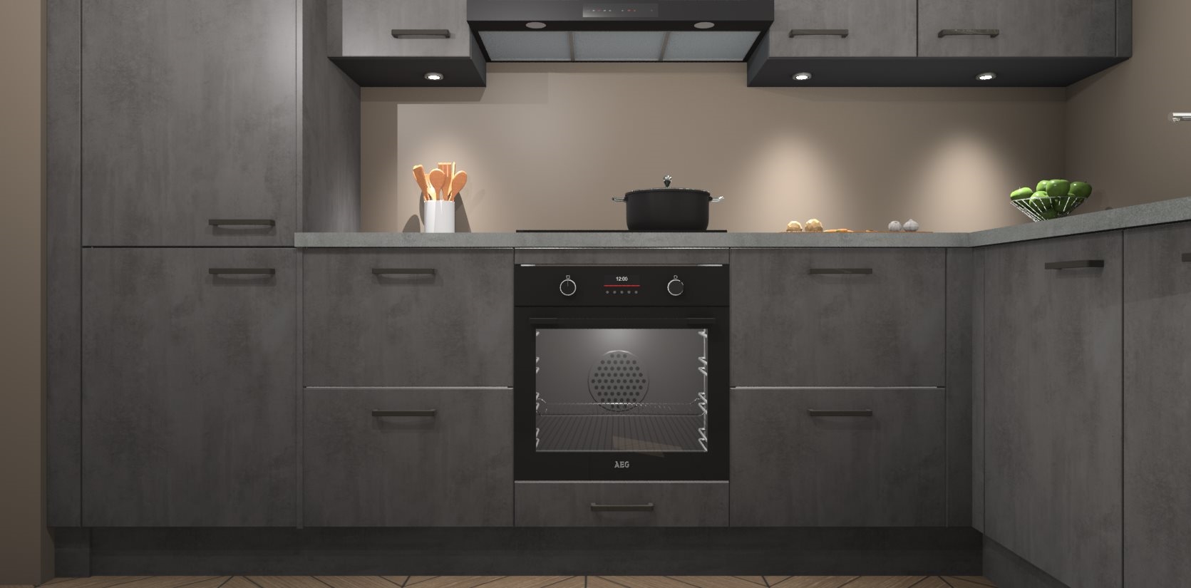 De Beton Antraciet keuken Geneve is uitgerust met 5 inbouwapparaten - een oven, inductiekookplaat, afzuigkap, vaatwasser en koelkast - voor al uw kook- en bewaarbehoeftes. U kunt deze apparaten desgewenst eenvoudig upgraden naar AEG of de oven omruilen voor een combimagnetron na het plaatsen van uw bestelling. En met de soft close deuren, voldoende opbergruimte en kasten die voorgemonteerd worden geleverd, bent u in een mum van tijd klaar om heerlijke maaltijden te bereiden!