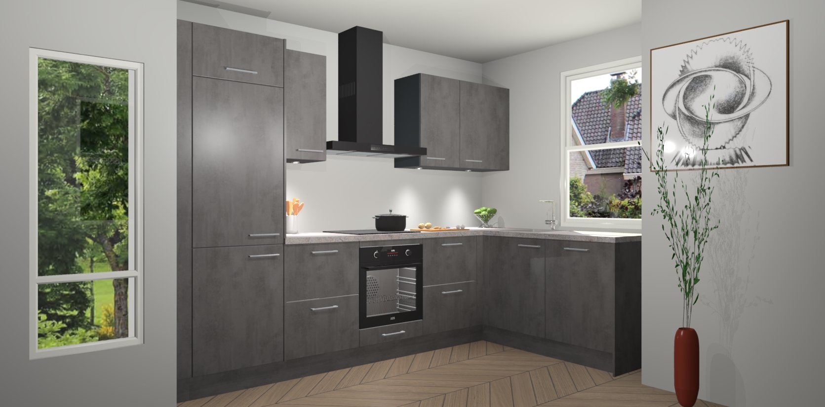 De Beton Antraciet keuken Geneve is precies wat u nodig heeft als u op zoek bent naar modern design, versmolten met tijdloze schoonheid. De strakke afwerking voegt klasse toe terwijl het toch een uitnodigende sfeer behoudt; zeker om zowel gasten als uzelf te inspireren om in stijl te gaan koken! En nog beter, het zal uw budget niet breken - dus waarom wachten? Met de Beton Antraciet keuken Geneve bent u verzekerd van kwaliteit zonder in te leveren op de prijs!