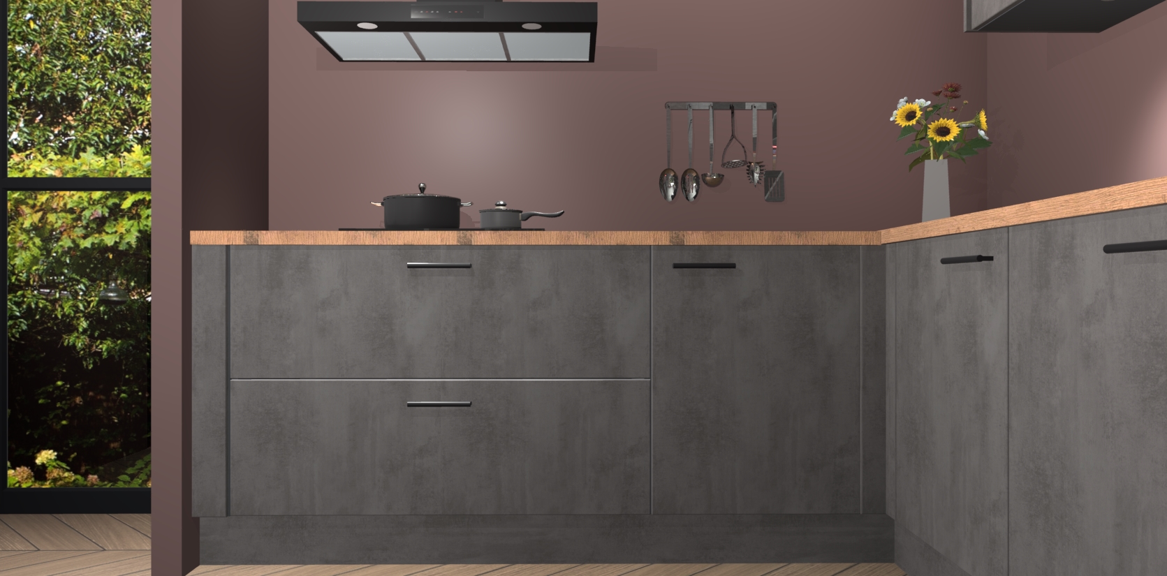 Inclusief plinten, stelpoten en werkblad