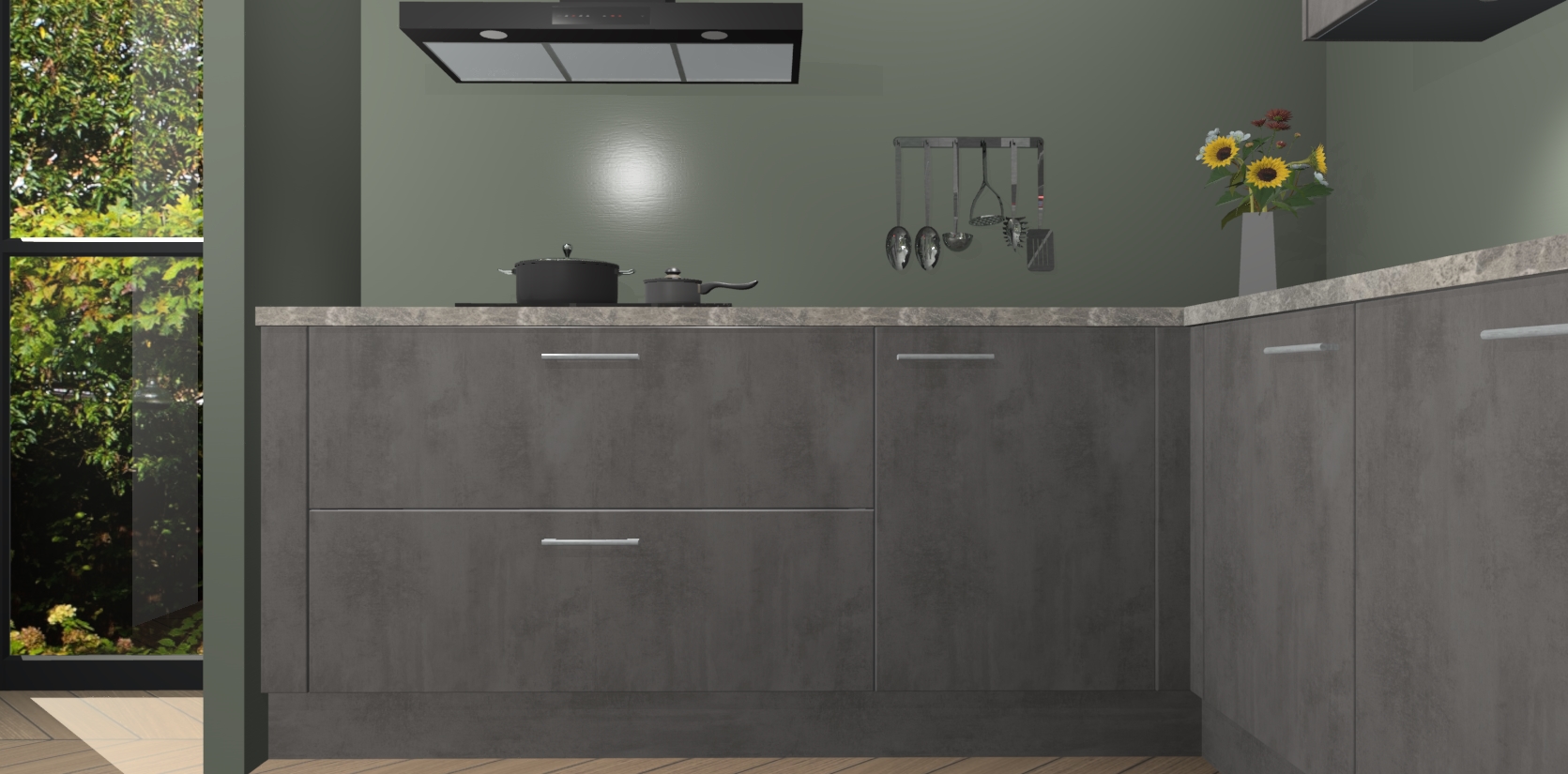 Dit is de perfecte keuken voor wie op zoek is naar een luxueuze stijl zonder zijn portemonnee te legen! Het chique ontwerp van Beton Antraciet keuken Gotenburg voegt dat vleugje verfijning toe aan elk huis.