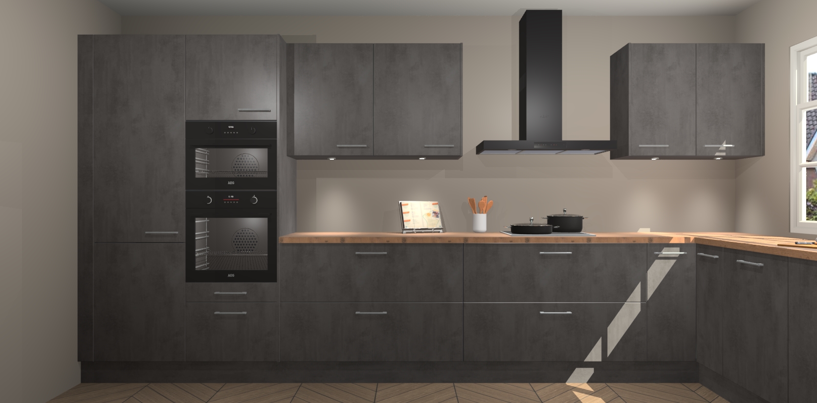 Heeft u nog apparatuur nodig? Geen probleem: de beton antraciet keuken Graz bevat vijf ingebouwde apparaten - een oven, inductiekookplaat, afzuigkap, vaatwasser en koelkast - die gemakkelijk kunnen worden bijgewerkt naar AEG na bestelling. En als dat nog niet genoeg is; onze kasten worden pre-geassembleerd geleverd en zijn verkrijgbaar tegen een vastgeroeste lage prijs! U hoeft nooit meer te zoeken naar goede kwaliteit en service want onze producten hebben echt Duitse kwaliteit.