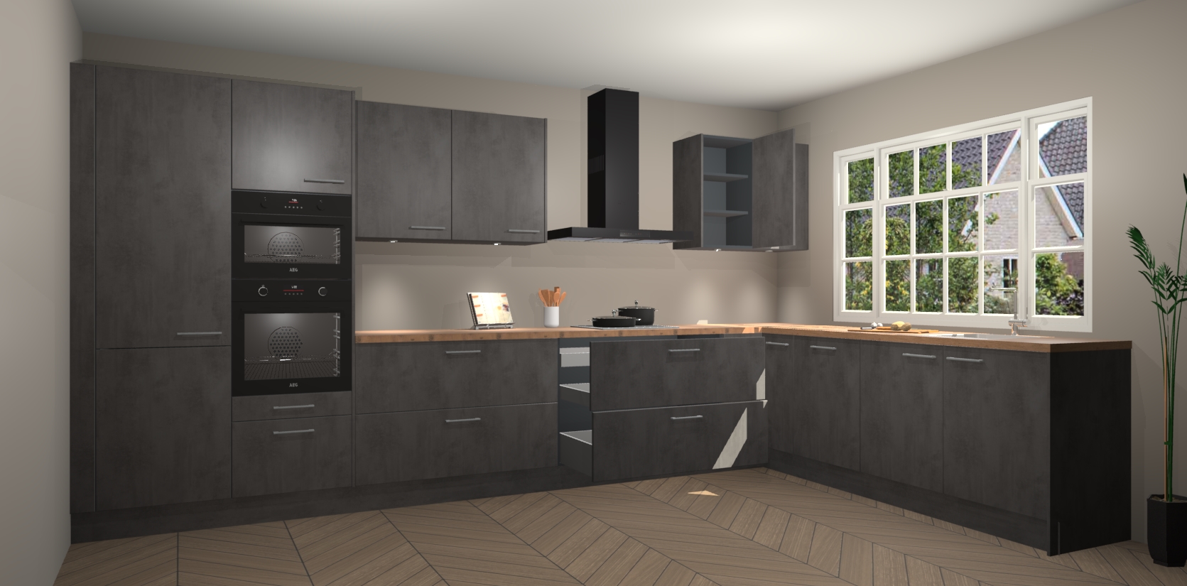 Kom dichtbij de perfecte keuken van uw dromen met de beton antraciet keuken Graz. Met een prachtige houtlook en eigentijds ontwerp, straalt deze keuken warmte en sfeer uit. Of u nu liefhebber bent van traditionele of moderne stijlen, er is genoeg ruimte om aan al uw behoeften te voldoen.