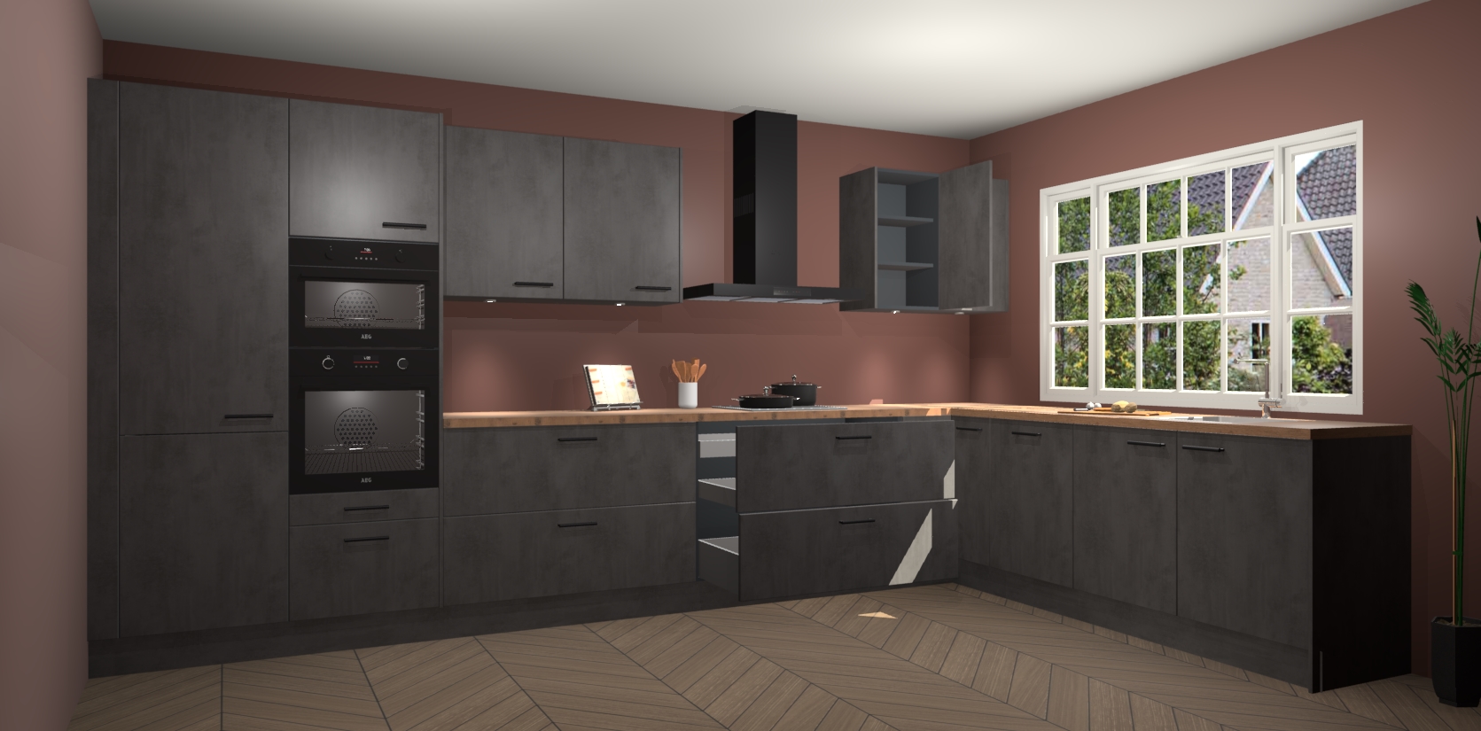 Kom dichtbij de perfecte keuken van uw dromen met de beton antraciet keuken Graz. Met een prachtige houtlook en eigentijds ontwerp, straalt deze keuken warmte en sfeer uit. Of u nu liefhebber bent van traditionele of moderne stijlen, er is genoeg ruimte om aan al uw behoeften te voldoen.