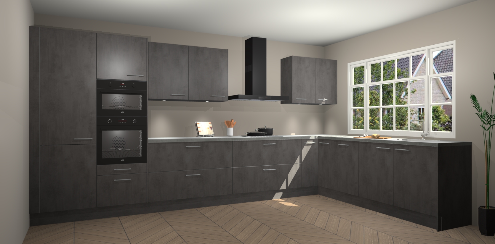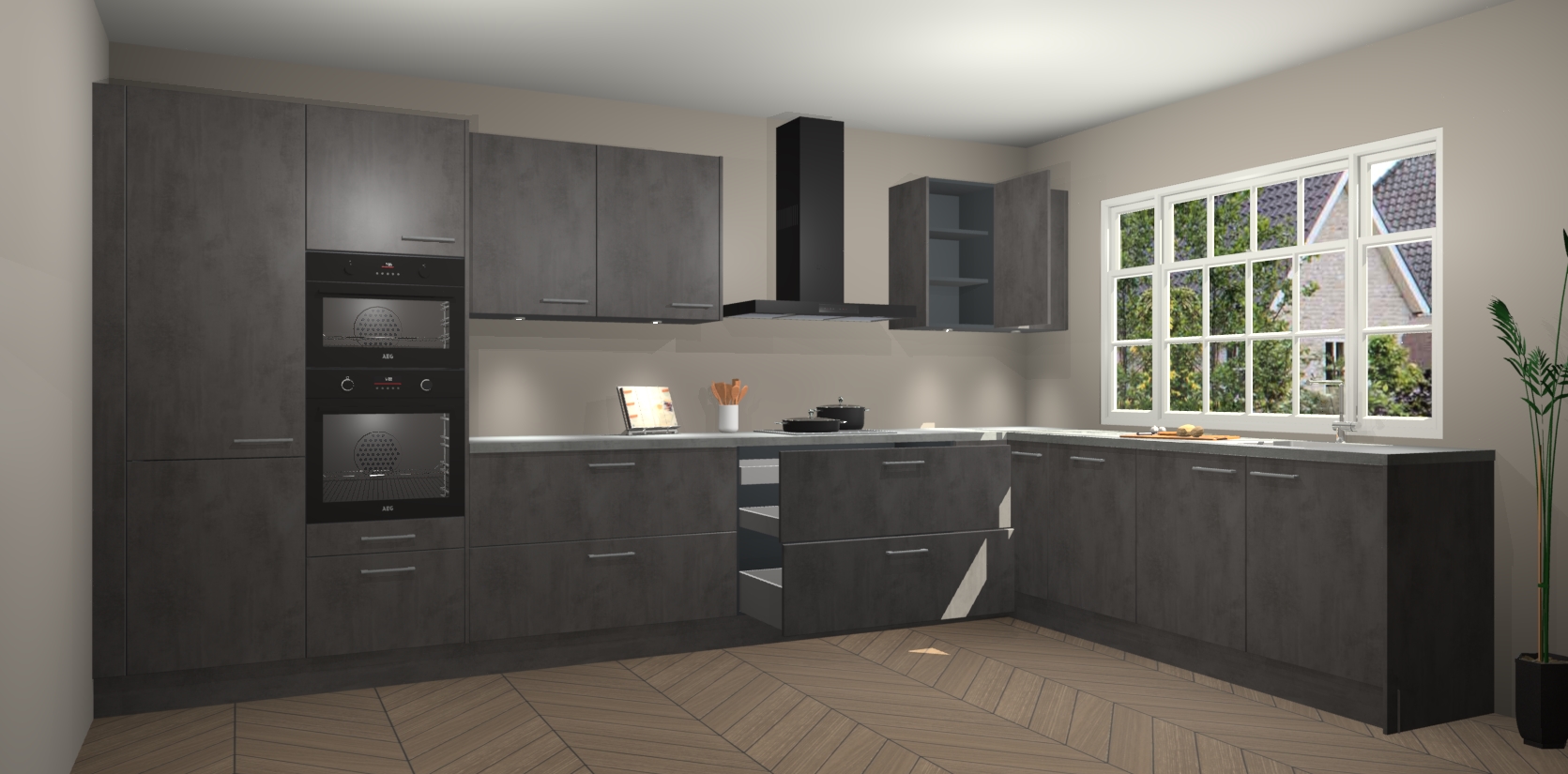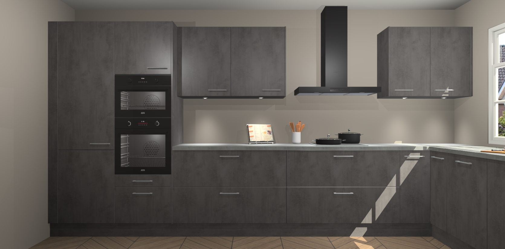 Heeft u nog apparatuur nodig? Geen probleem: de beton antraciet keuken Graz bevat vijf ingebouwde apparaten - een oven, inductiekookplaat, afzuigkap, vaatwasser en koelkast - die gemakkelijk kunnen worden bijgewerkt naar AEG na bestelling. En als dat nog niet genoeg is; onze kasten worden pre-geassembleerd geleverd en zijn verkrijgbaar tegen een vastgeroeste lage prijs! U hoeft nooit meer te zoeken naar goede kwaliteit en service want onze producten hebben echt Duitse kwaliteit.