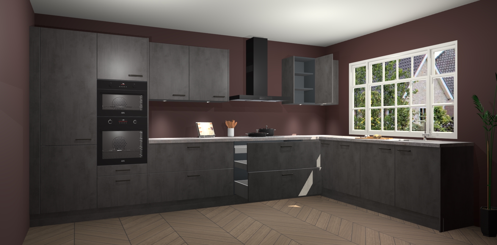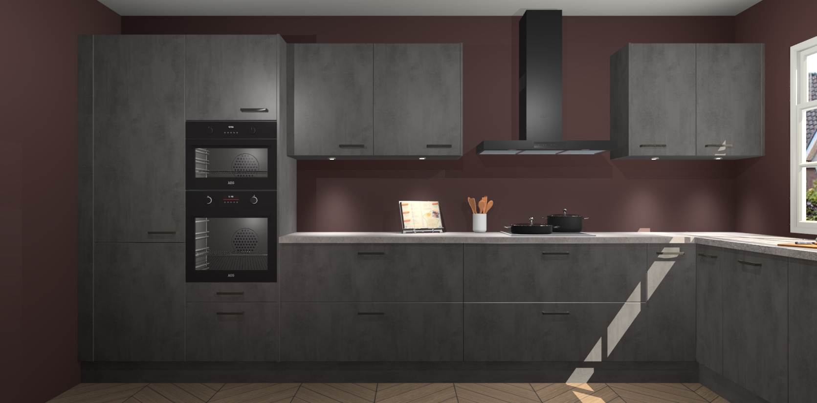 Heeft u nog apparatuur nodig? Geen probleem: de beton antraciet keuken Graz bevat vijf ingebouwde apparaten - een oven, inductiekookplaat, afzuigkap, vaatwasser en koelkast - die gemakkelijk kunnen worden bijgewerkt naar AEG na bestelling. En als dat nog niet genoeg is; onze kasten worden pre-geassembleerd geleverd en zijn verkrijgbaar tegen een vastgeroeste lage prijs! U hoeft nooit meer te zoeken naar goede kwaliteit en service want onze producten hebben echt Duitse kwaliteit.