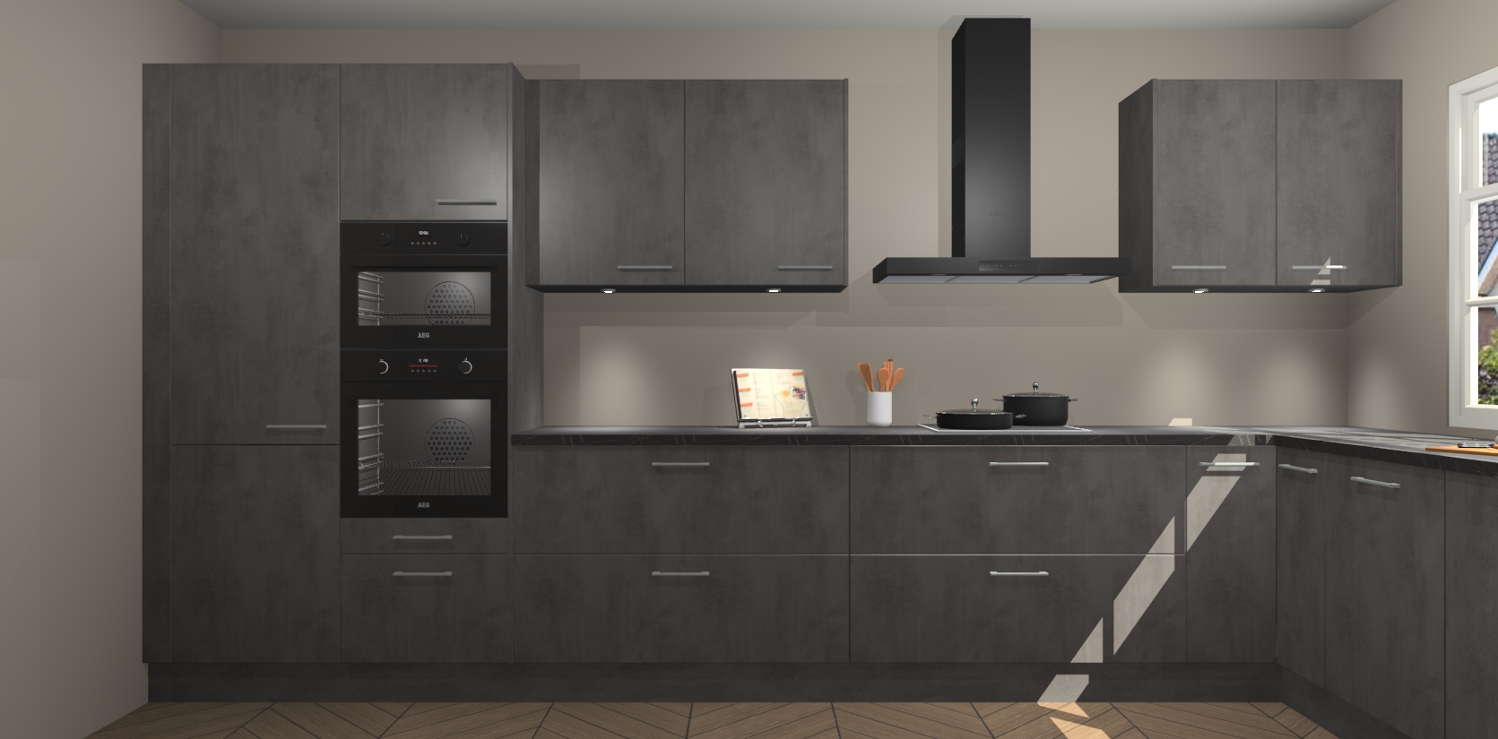 Heeft u nog apparatuur nodig? Geen probleem: de beton antraciet keuken Graz bevat vijf ingebouwde apparaten - een oven, inductiekookplaat, afzuigkap, vaatwasser en koelkast - die gemakkelijk kunnen worden bijgewerkt naar AEG na bestelling. En als dat nog niet genoeg is; onze kasten worden pre-geassembleerd geleverd en zijn verkrijgbaar tegen een vastgeroeste lage prijs! U hoeft nooit meer te zoeken naar goede kwaliteit en service want onze producten hebben echt Duitse kwaliteit.