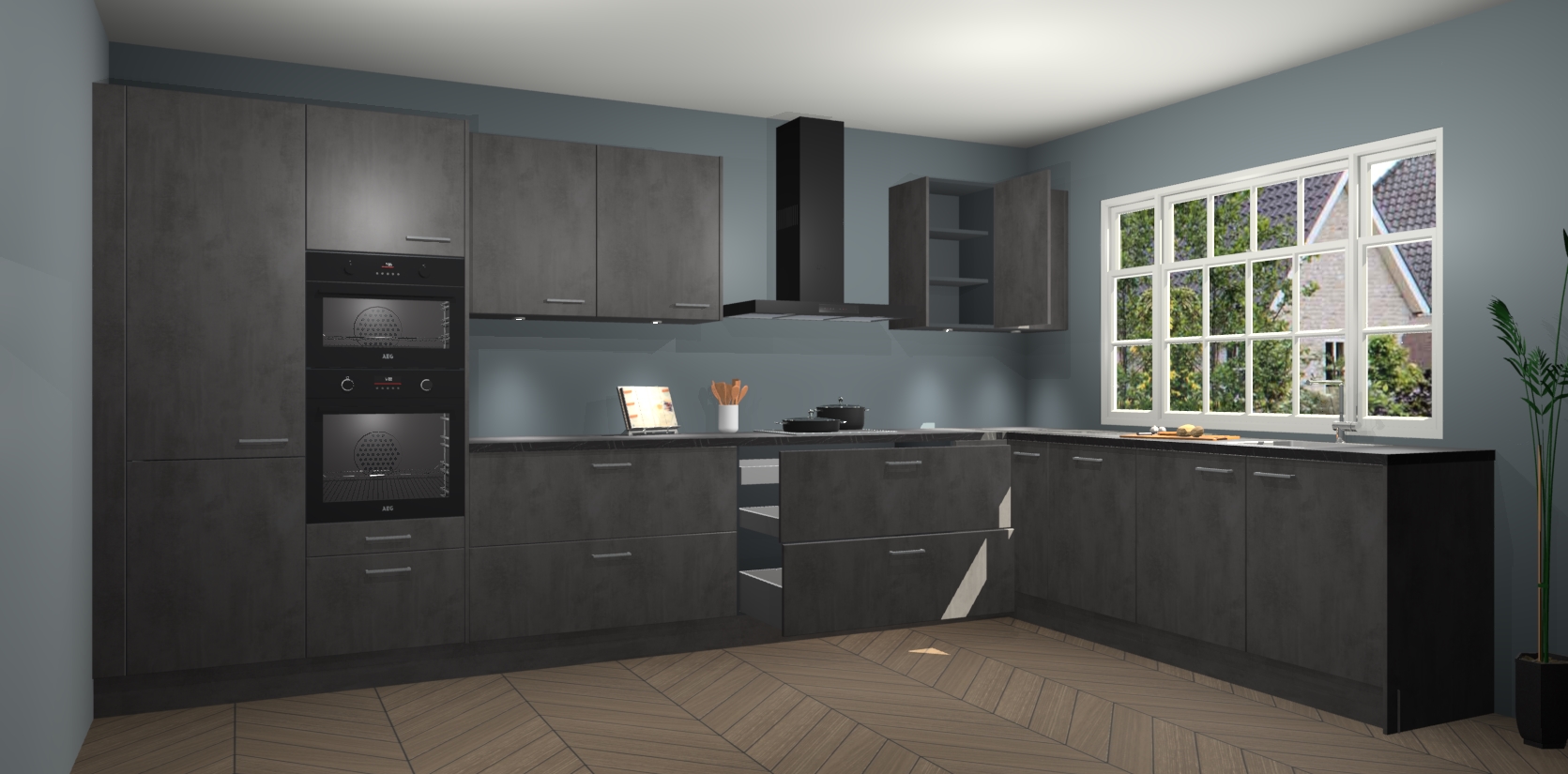 Kom dichtbij de perfecte keuken van uw dromen met de beton antraciet keuken Graz. Met een prachtige houtlook en eigentijds ontwerp, straalt deze keuken warmte en sfeer uit. Of u nu liefhebber bent van traditionele of moderne stijlen, er is genoeg ruimte om aan al uw behoeften te voldoen.