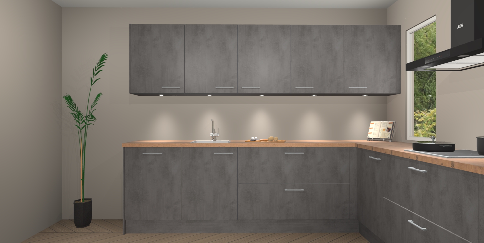 Heeft u nog apparatuur nodig? Geen probleem: de beton antraciet keuken Harare bevat vijf ingebouwde apparaten - een oven, inductiekookplaat, afzuigkap, vaatwasser en koelkast - die gemakkelijk kunnen worden bijgewerkt naar AEG na bestelling. En als dat nog niet genoeg is; onze kasten worden pre-geassembleerd geleverd en zijn verkrijgbaar tegen een vastgeroeste lage prijs! U hoeft nooit meer te zoeken naar goede kwaliteit en service want onze producten hebben echt Duitse kwaliteit.
