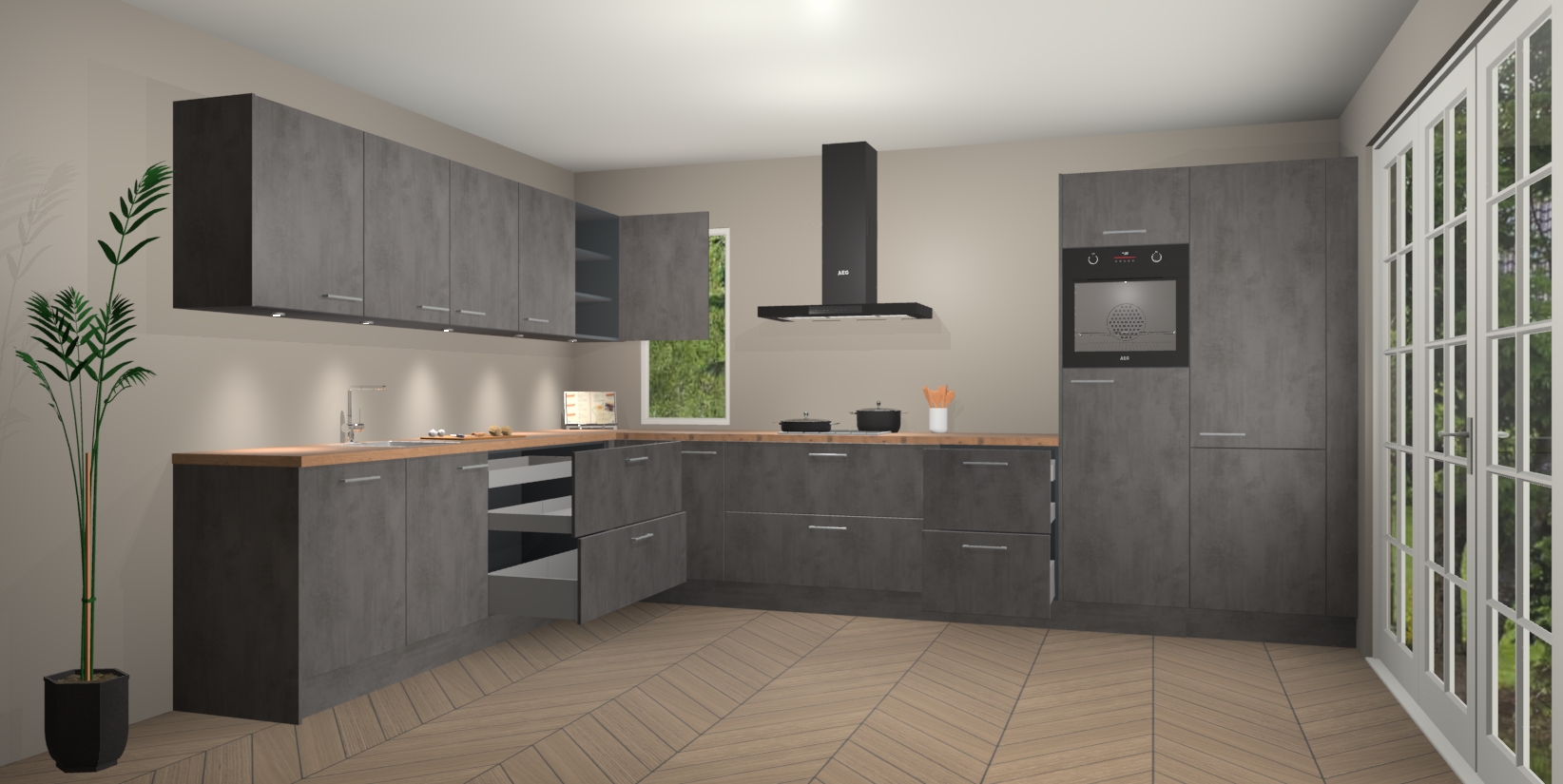 Kom dichtbij de perfecte keuken van uw dromen met de beton antraciet keuken Harare. Met een prachtige houtlook en eigentijds ontwerp, straalt deze keuken warmte en sfeer uit. Of u nu liefhebber bent van traditionele of moderne stijlen, er is genoeg ruimte om aan al uw behoeften te voldoen.
