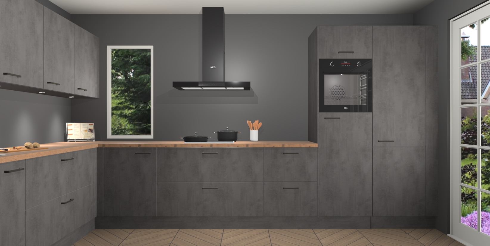 Heeft u nog apparatuur nodig? Geen probleem: de beton antraciet keuken Harare bevat vijf ingebouwde apparaten - een oven, inductiekookplaat, afzuigkap, vaatwasser en koelkast - die gemakkelijk kunnen worden bijgewerkt naar AEG na bestelling. En als dat nog niet genoeg is; onze kasten worden pre-geassembleerd geleverd en zijn verkrijgbaar tegen een vastgeroeste lage prijs! U hoeft nooit meer te zoeken naar goede kwaliteit en service want onze producten hebben echt Duitse kwaliteit.