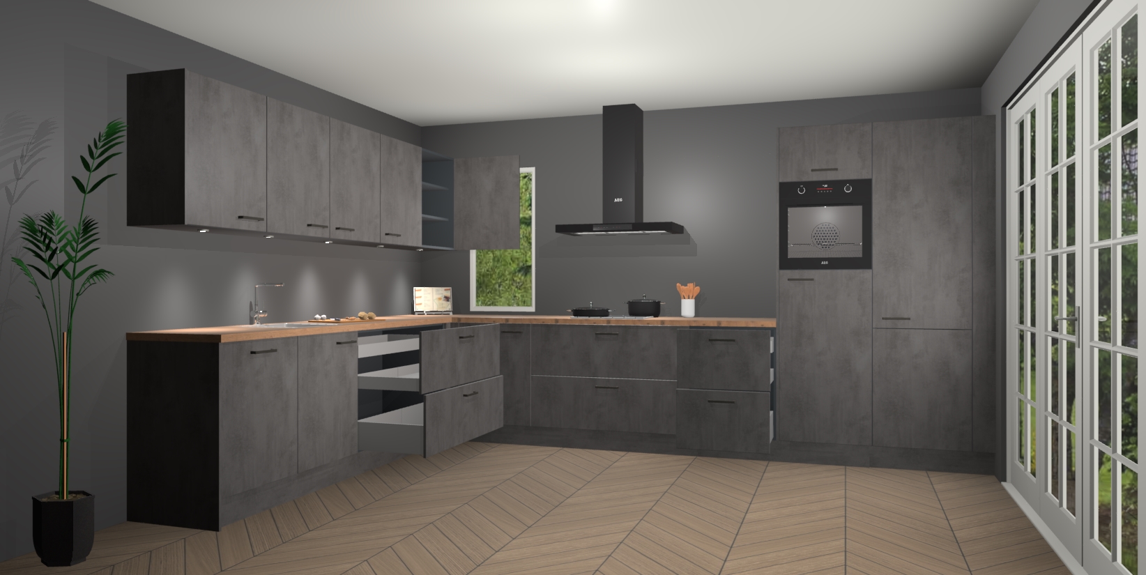 Kom dichtbij de perfecte keuken van uw dromen met de beton antraciet keuken Harare. Met een prachtige houtlook en eigentijds ontwerp, straalt deze keuken warmte en sfeer uit. Of u nu liefhebber bent van traditionele of moderne stijlen, er is genoeg ruimte om aan al uw behoeften te voldoen.