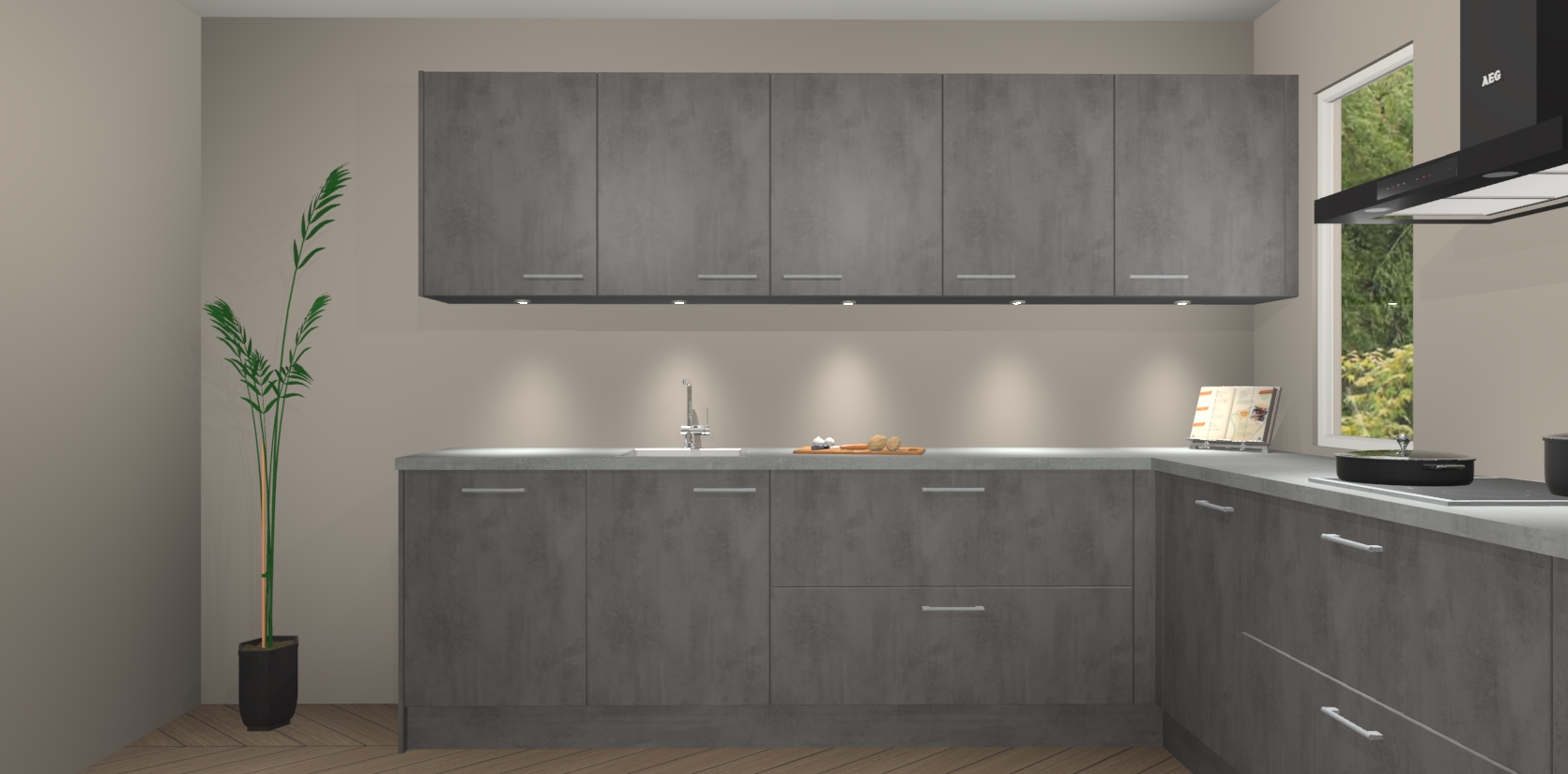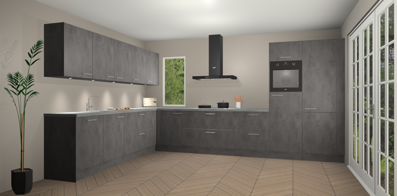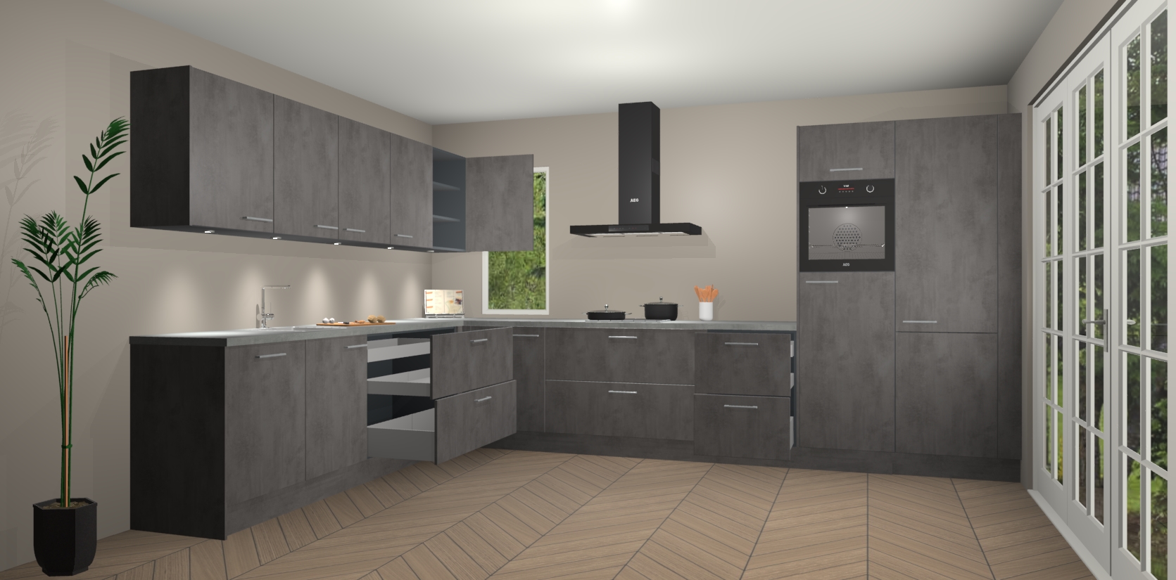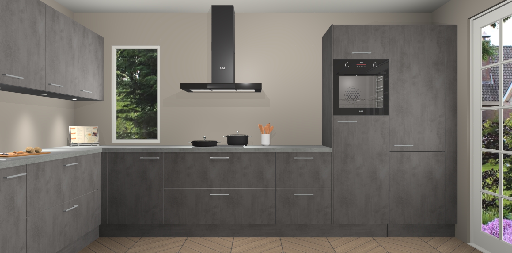 Heeft u nog apparatuur nodig? Geen probleem: de beton antraciet keuken Harare bevat vijf ingebouwde apparaten - een oven, inductiekookplaat, afzuigkap, vaatwasser en koelkast - die gemakkelijk kunnen worden bijgewerkt naar AEG na bestelling. En als dat nog niet genoeg is; onze kasten worden pre-geassembleerd geleverd en zijn verkrijgbaar tegen een vastgeroeste lage prijs! U hoeft nooit meer te zoeken naar goede kwaliteit en service want onze producten hebben echt Duitse kwaliteit.