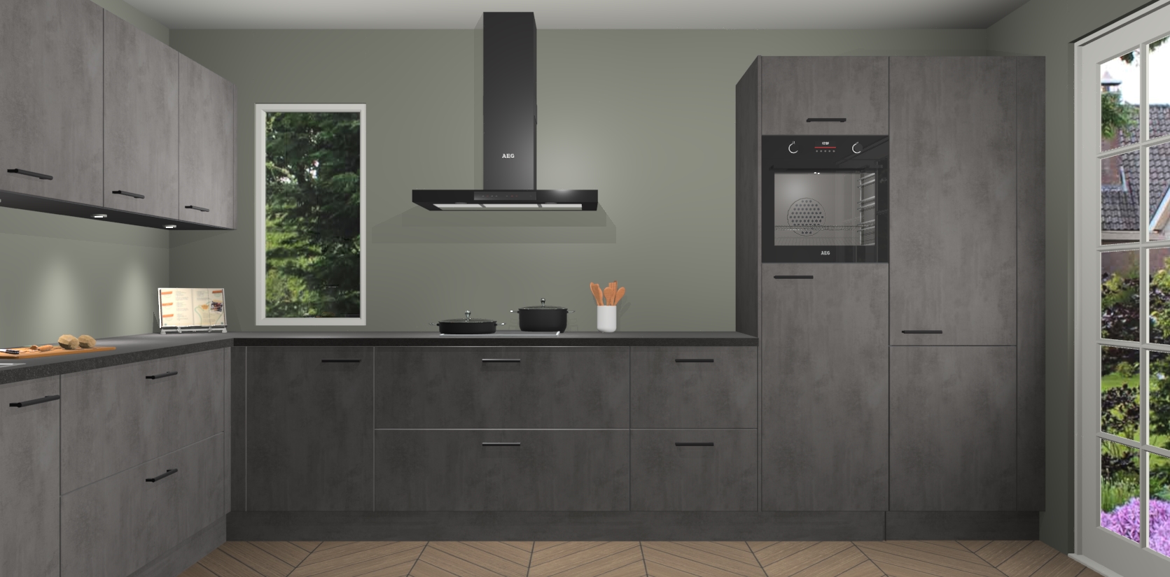 Heeft u nog apparatuur nodig? Geen probleem: de beton antraciet keuken Harare bevat vijf ingebouwde apparaten - een oven, inductiekookplaat, afzuigkap, vaatwasser en koelkast - die gemakkelijk kunnen worden bijgewerkt naar AEG na bestelling. En als dat nog niet genoeg is; onze kasten worden pre-geassembleerd geleverd en zijn verkrijgbaar tegen een vastgeroeste lage prijs! U hoeft nooit meer te zoeken naar goede kwaliteit en service want onze producten hebben echt Duitse kwaliteit.