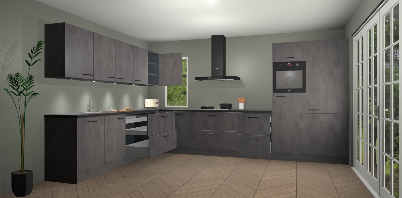 Kom dichtbij de perfecte keuken van uw dromen met de beton antraciet keuken Harare. Met een prachtige houtlook en eigentijds ontwerp, straalt deze keuken warmte en sfeer uit. Of u nu liefhebber bent van traditionele of moderne stijlen, er is genoeg ruimte om aan al uw behoeften te voldoen.