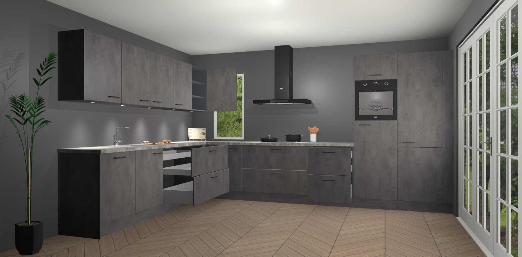 Kom dichtbij de perfecte keuken van uw dromen met de beton antraciet keuken Harare. Met een prachtige houtlook en eigentijds ontwerp, straalt deze keuken warmte en sfeer uit. Of u nu liefhebber bent van traditionele of moderne stijlen, er is genoeg ruimte om aan al uw behoeften te voldoen.