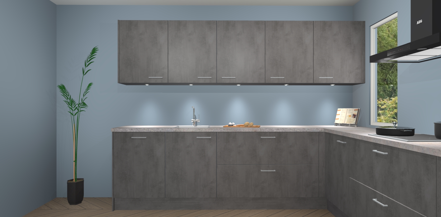 Heeft u nog apparatuur nodig? Geen probleem: de beton antraciet keuken Harare bevat vijf ingebouwde apparaten - een oven, inductiekookplaat, afzuigkap, vaatwasser en koelkast - die gemakkelijk kunnen worden bijgewerkt naar AEG na bestelling. En als dat nog niet genoeg is; onze kasten worden pre-geassembleerd geleverd en zijn verkrijgbaar tegen een vastgeroeste lage prijs! U hoeft nooit meer te zoeken naar goede kwaliteit en service want onze producten hebben echt Duitse kwaliteit.