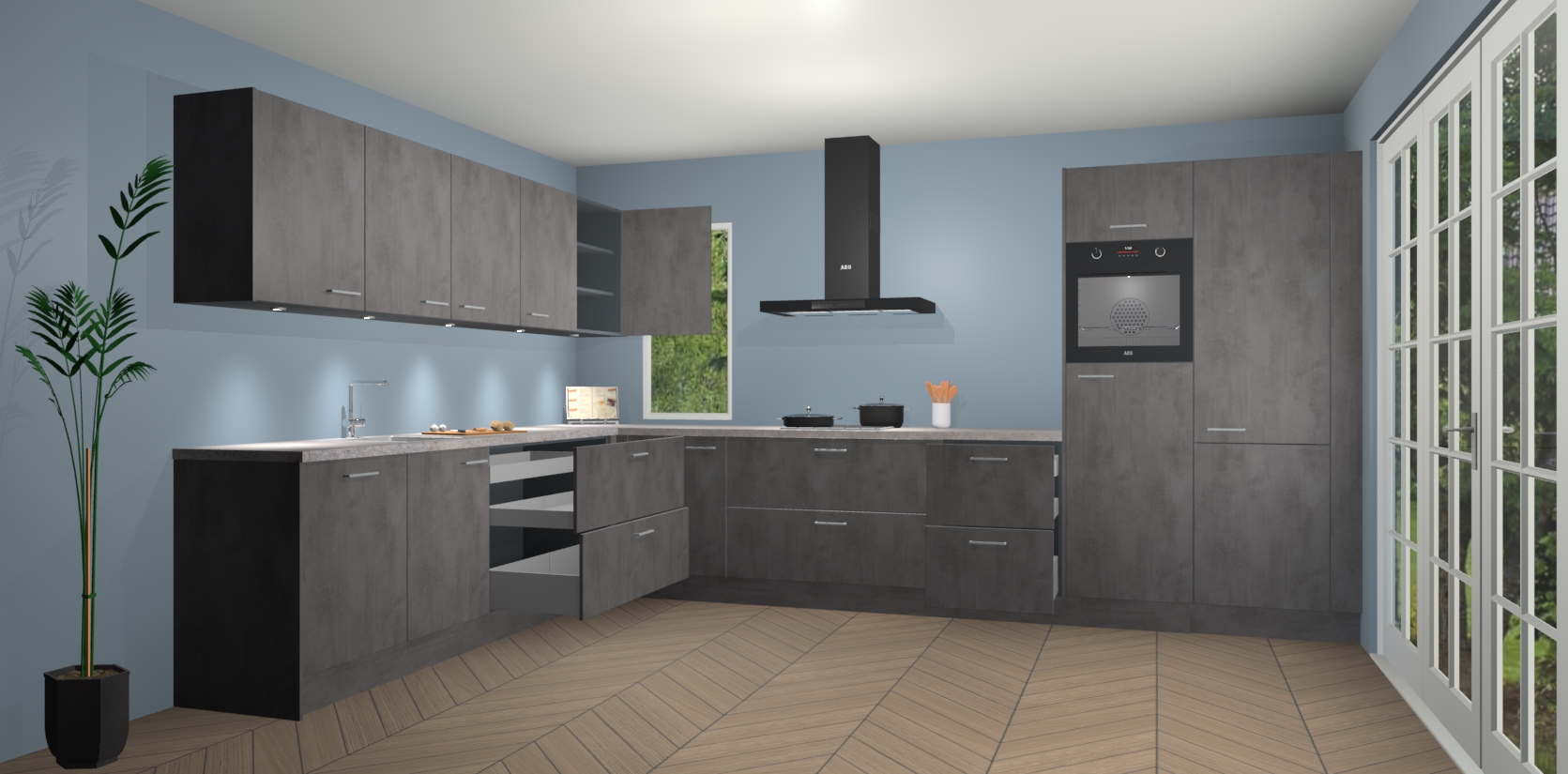 Kom dichtbij de perfecte keuken van uw dromen met de beton antraciet keuken Harare. Met een prachtige houtlook en eigentijds ontwerp, straalt deze keuken warmte en sfeer uit. Of u nu liefhebber bent van traditionele of moderne stijlen, er is genoeg ruimte om aan al uw behoeften te voldoen.