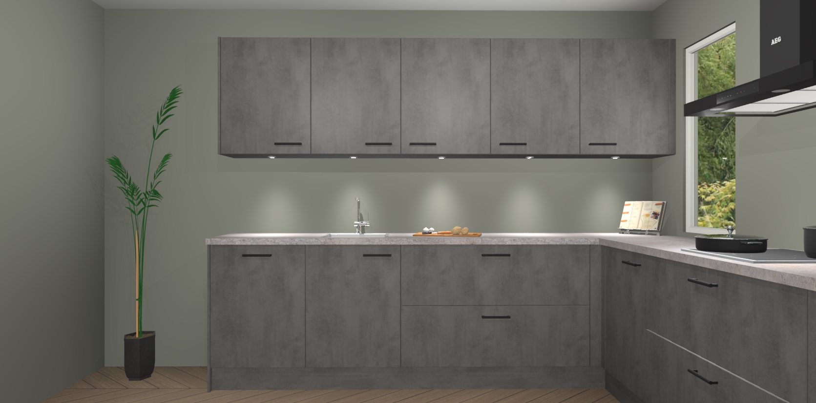 Heeft u nog apparatuur nodig? Geen probleem: de beton antraciet keuken Harare bevat vijf ingebouwde apparaten - een oven, inductiekookplaat, afzuigkap, vaatwasser en koelkast - die gemakkelijk kunnen worden bijgewerkt naar AEG na bestelling. En als dat nog niet genoeg is; onze kasten worden pre-geassembleerd geleverd en zijn verkrijgbaar tegen een vastgeroeste lage prijs! U hoeft nooit meer te zoeken naar goede kwaliteit en service want onze producten hebben echt Duitse kwaliteit.