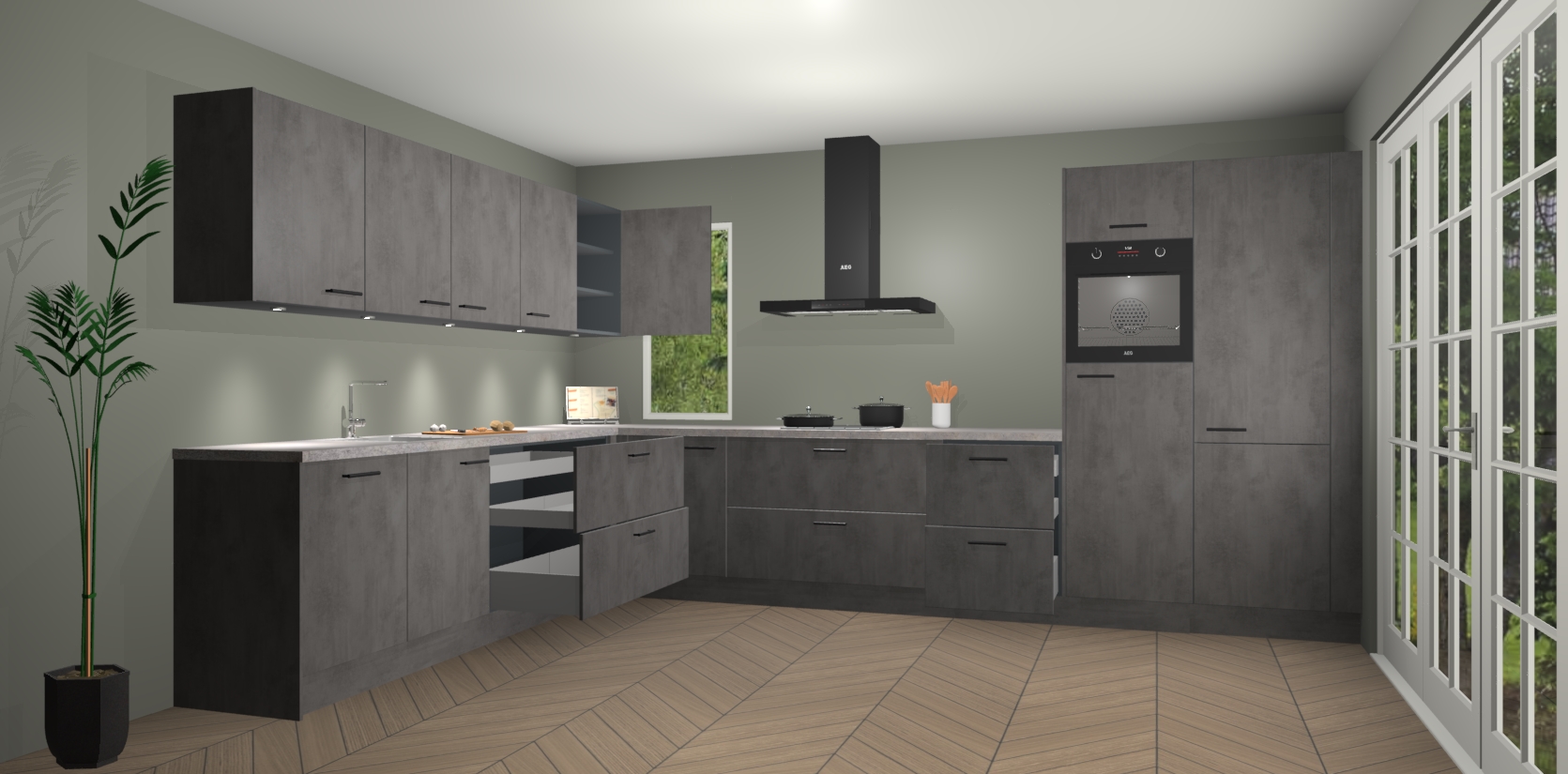 Kom dichtbij de perfecte keuken van uw dromen met de beton antraciet keuken Harare. Met een prachtige houtlook en eigentijds ontwerp, straalt deze keuken warmte en sfeer uit. Of u nu liefhebber bent van traditionele of moderne stijlen, er is genoeg ruimte om aan al uw behoeften te voldoen.