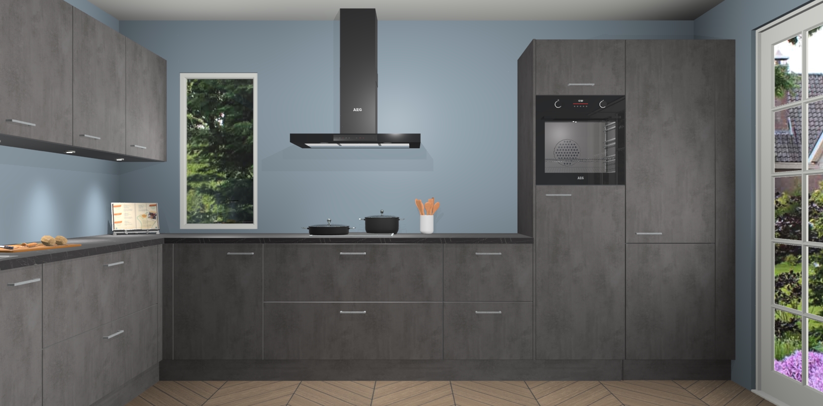 Heeft u nog apparatuur nodig? Geen probleem: de beton antraciet keuken Harare bevat vijf ingebouwde apparaten - een oven, inductiekookplaat, afzuigkap, vaatwasser en koelkast - die gemakkelijk kunnen worden bijgewerkt naar AEG na bestelling. En als dat nog niet genoeg is; onze kasten worden pre-geassembleerd geleverd en zijn verkrijgbaar tegen een vastgeroeste lage prijs! U hoeft nooit meer te zoeken naar goede kwaliteit en service want onze producten hebben echt Duitse kwaliteit.