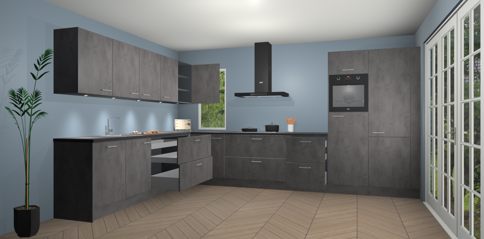 Kom dichtbij de perfecte keuken van uw dromen met de beton antraciet keuken Harare. Met een prachtige houtlook en eigentijds ontwerp, straalt deze keuken warmte en sfeer uit. Of u nu liefhebber bent van traditionele of moderne stijlen, er is genoeg ruimte om aan al uw behoeften te voldoen.