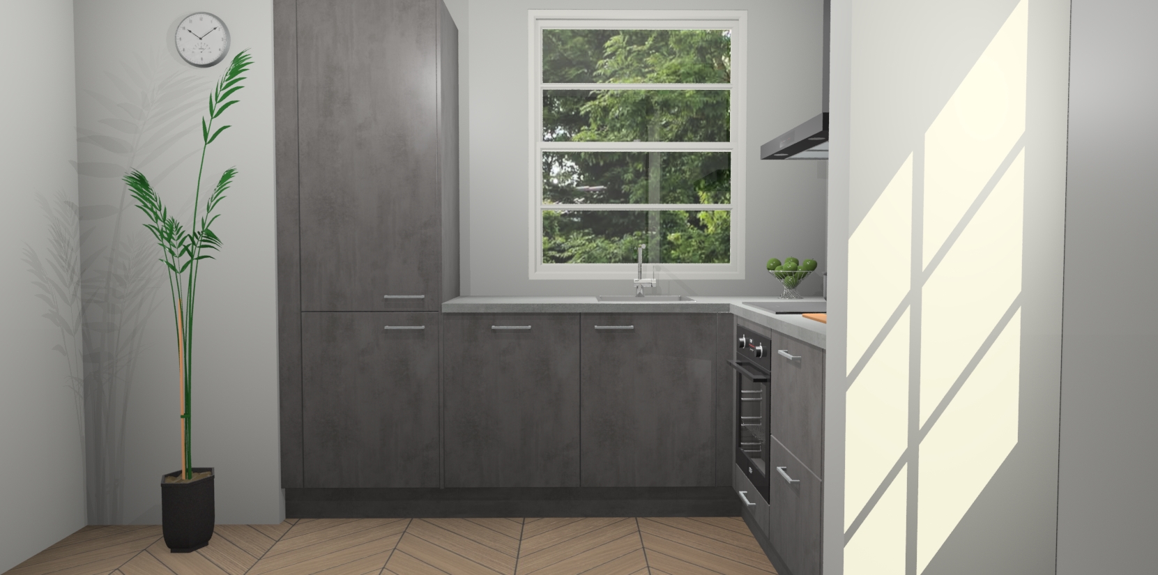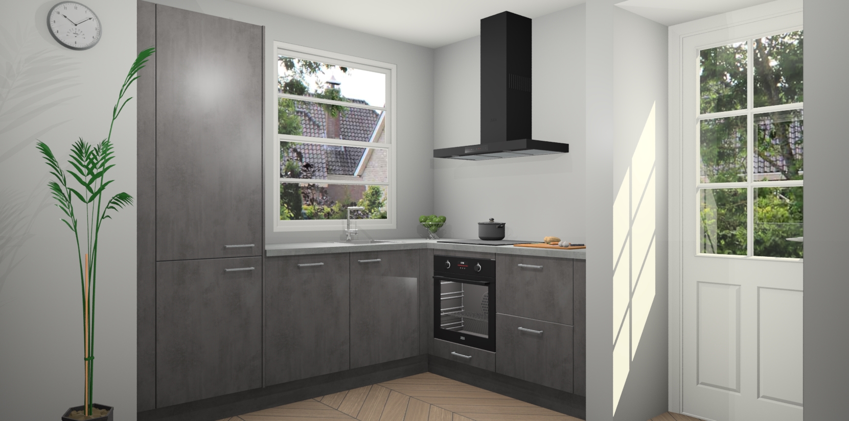 Wilt u een echte aanwinst voor uw keuken, maar bent u op zoek naar iets specialers dan de standaardkeukens? Kies dan voor de Beton Antraciet keuken Harbin! Dit prachtige hoekkeukenontwerp geeft u alle ruimte om optimaal te genieten van heerlijk koken. Het uitmuntende afwerkingsniveau, de fraaie houtstructuur en de sfeervolle zwarte grepen maken van de Beton Antraciet keuken Harbin de perfecte keuze voor zowel enthousiaste thuiskoks als design-minded interieurliefhebbers.