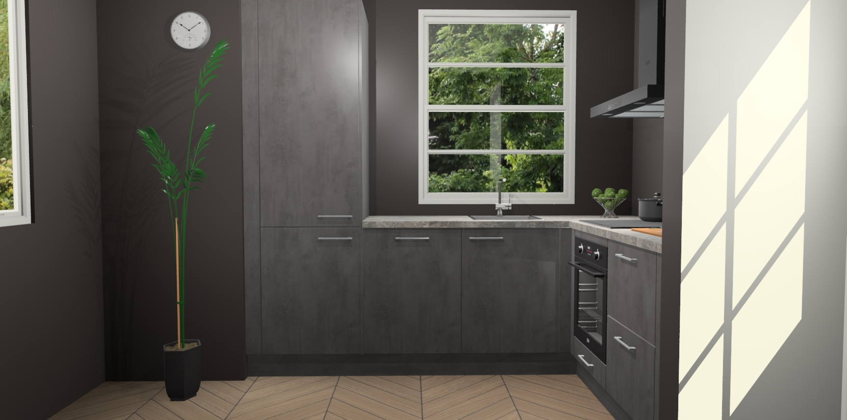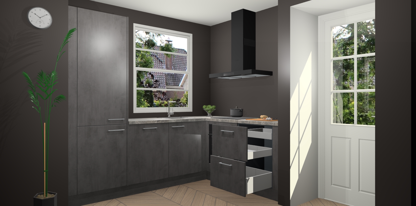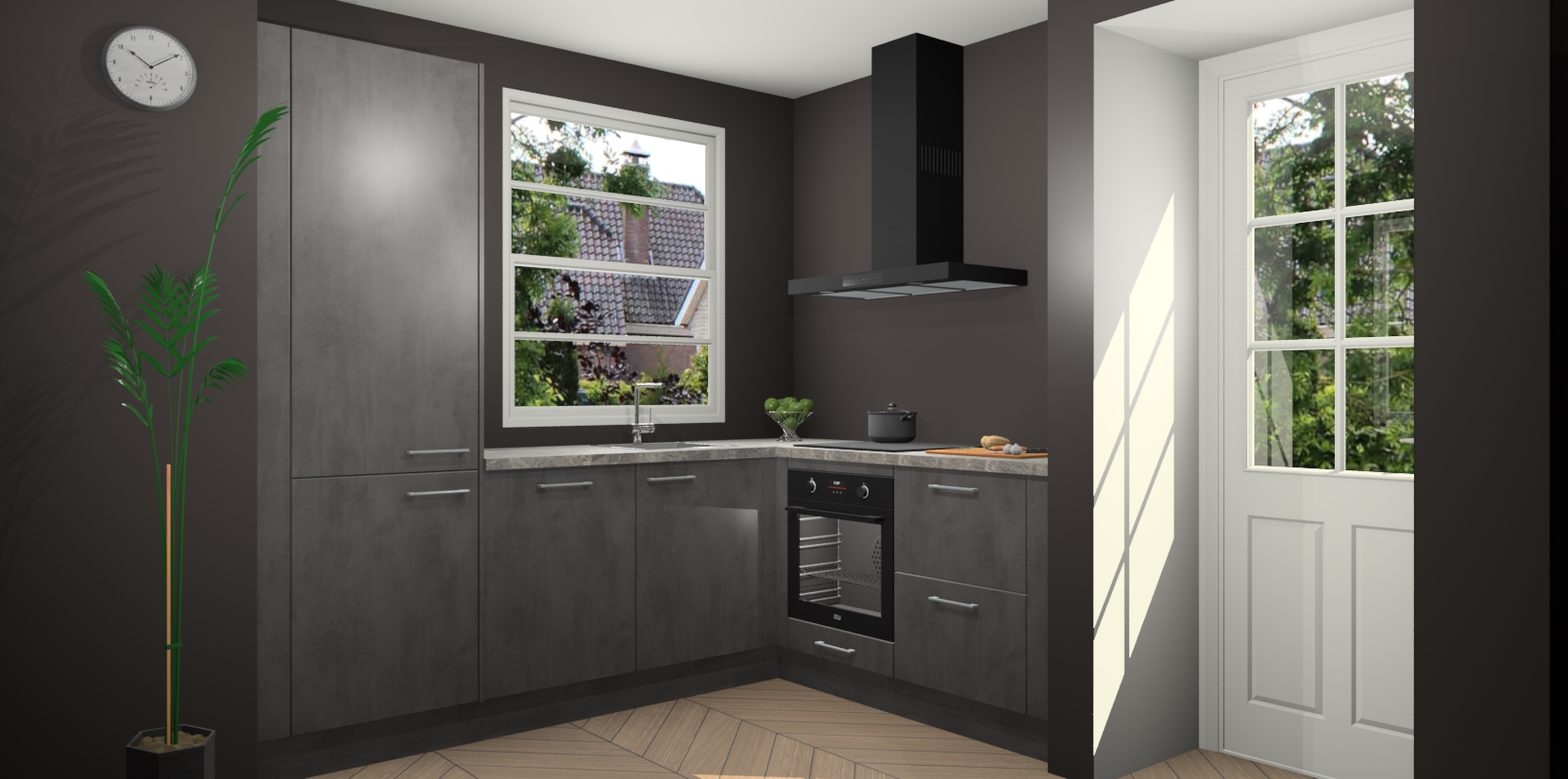Wilt u een echte aanwinst voor uw keuken, maar bent u op zoek naar iets specialers dan de standaardkeukens? Kies dan voor de Beton Antraciet keuken Harbin! Dit prachtige hoekkeukenontwerp geeft u alle ruimte om optimaal te genieten van heerlijk koken. Het uitmuntende afwerkingsniveau, de fraaie houtstructuur en de sfeervolle zwarte grepen maken van de Beton Antraciet keuken Harbin de perfecte keuze voor zowel enthousiaste thuiskoks als design-minded interieurliefhebbers.