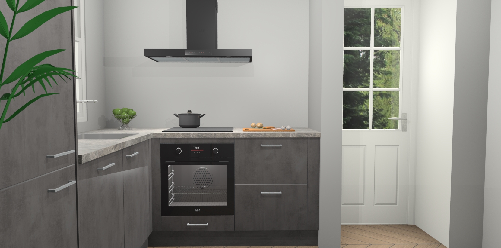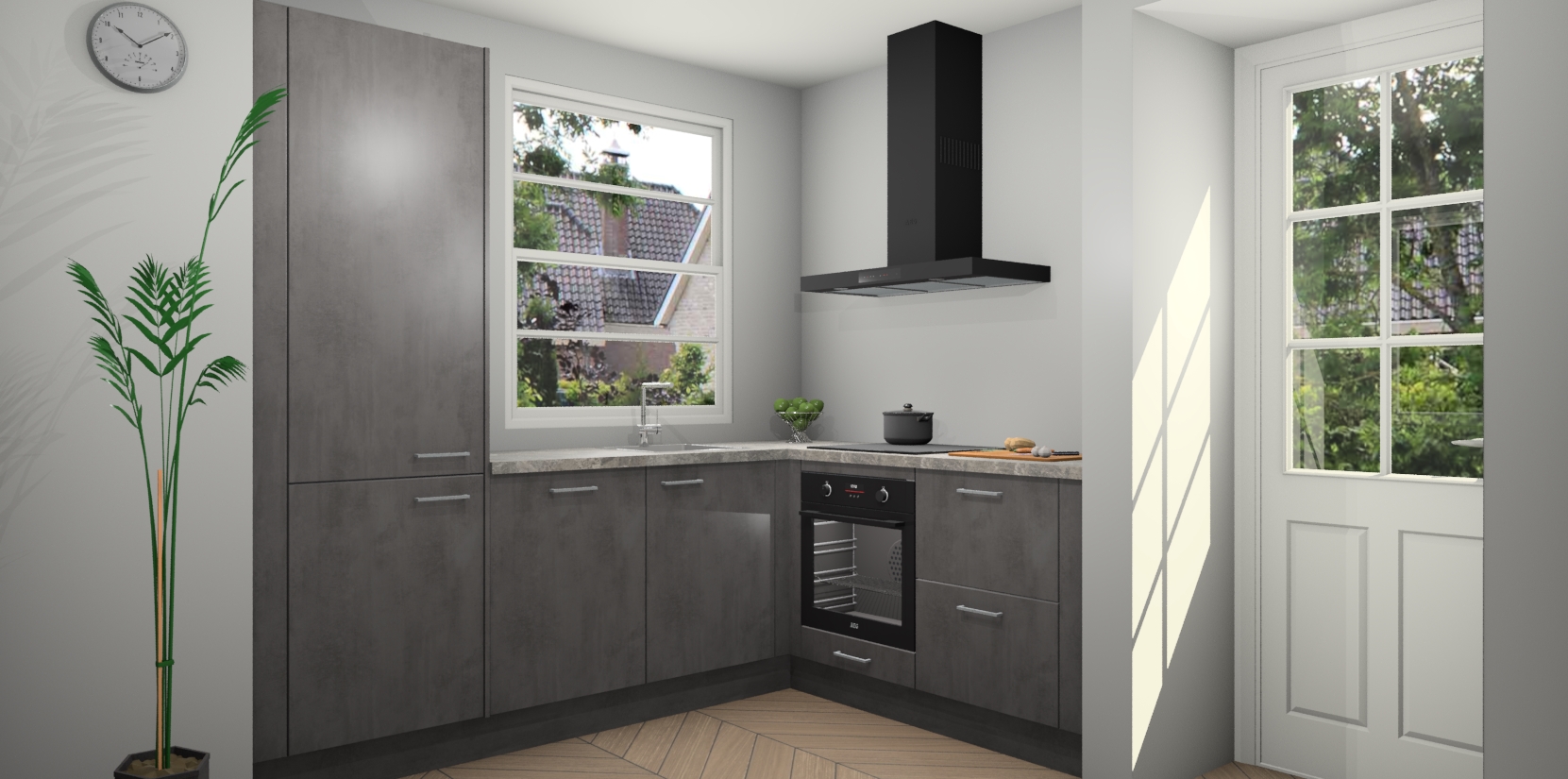Plus: de Beton Antraciet keuken Harbin is kant en klaar voorzien van 5 inbouwapparaten. U krijgt er direct bij: een oven, inductiekookplaat, afzuigkap, vaatwasser én koelkast. En als dat nog niet luxueus genoeg is, heeft u nog de mogelijkheid om de apparaten te upgraden naar AEG of om uw oven te vervangen door een combimagnetron. Ook fijn van voordeel zijn de softclosing-deuren die ervoor zorgen dat u geen geluid hoeft te maken wanneer u weer uw koelkastdeurtjes dichtdoet!