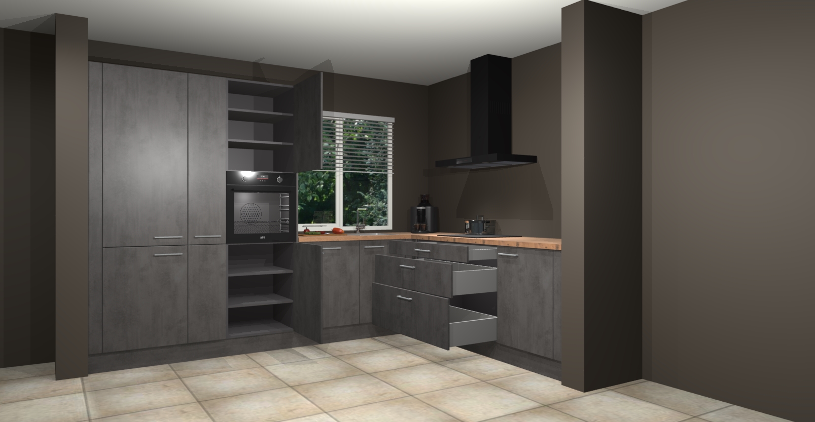 En dat is nog niet alles - de Beton Antraciet keuken India wordt ook heel snel geleverd met 7 weken! De prijs is vastgesteld zodat u nooit onaangenaam verrast word door onverwachte kosten. Al binnen twee maanden kunt u beginnen te genieten van optimale functionaliteit in luxueuze stijl - wat wilt u nog meer? Bestel nu uw Beton Antraciet keuken India en ervaar ongekende flexibiliteit en stijlvol design!
