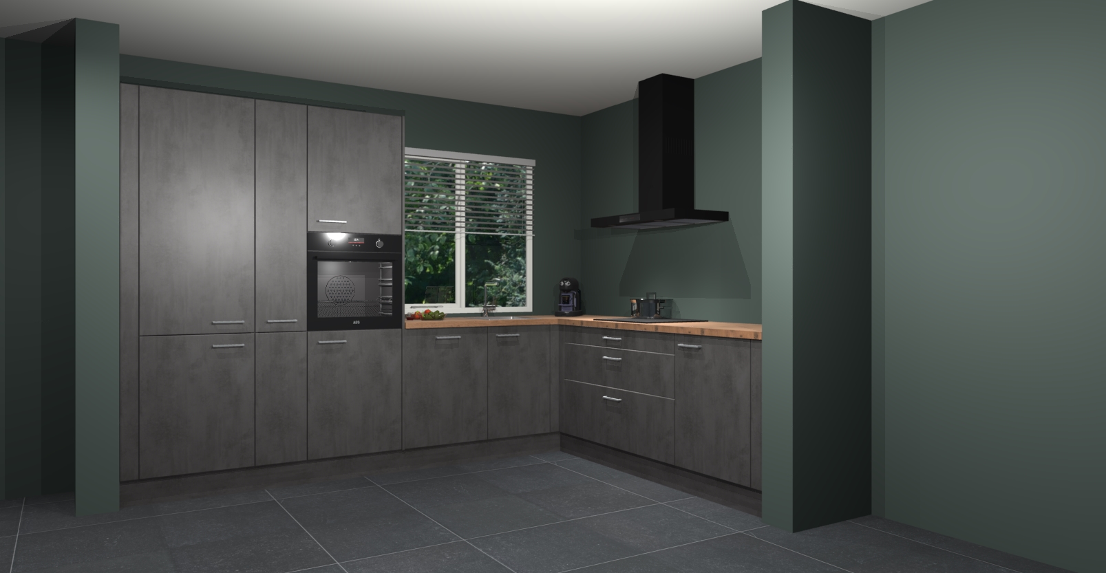 Wij presenteren de revolutie in keukens: de Beton Antraciet keuken India. Met modern design, een tijdloos uiterlijk en kasten die al voor gemonteerd worden geleverd, laat deze stijlvolle keuken uw kookervaring op een hele nieuwe manier transformeren.
