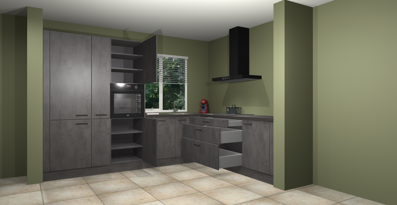 En dat is nog niet alles - de Beton Antraciet keuken India wordt ook heel snel geleverd met 7 weken! De prijs is vastgesteld zodat u nooit onaangenaam verrast word door onverwachte kosten. Al binnen twee maanden kunt u beginnen te genieten van optimale functionaliteit in luxueuze stijl - wat wilt u nog meer? Bestel nu uw Beton Antraciet keuken India en ervaar ongekende flexibiliteit en stijlvol design!