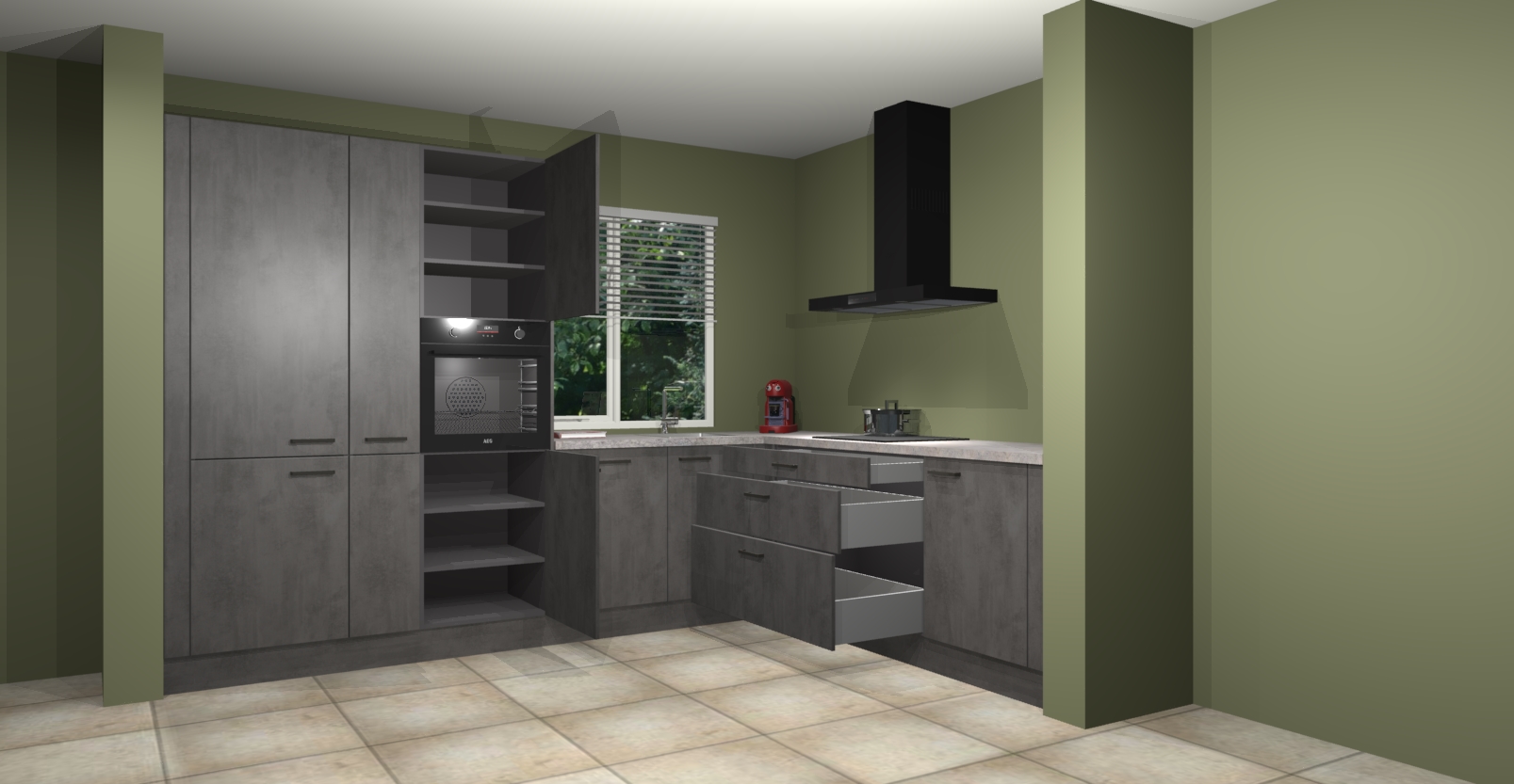 Wij presenteren de revolutie in keukens: de Beton Antraciet keuken India. Met modern design, een tijdloos uiterlijk en kasten die al voor gemonteerd worden geleverd, laat deze stijlvolle keuken uw kookervaring op een hele nieuwe manier transformeren.
