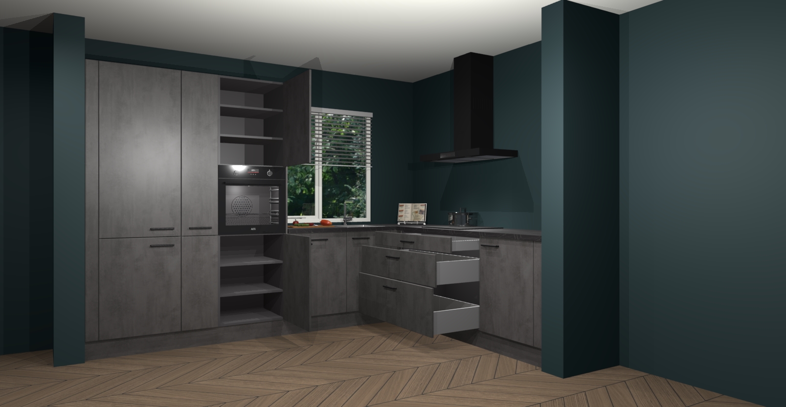 En dat is nog niet alles - de Beton Antraciet keuken India wordt ook heel snel geleverd met 7 weken! De prijs is vastgesteld zodat u nooit onaangenaam verrast word door onverwachte kosten. Al binnen twee maanden kunt u beginnen te genieten van optimale functionaliteit in luxueuze stijl - wat wilt u nog meer? Bestel nu uw Beton Antraciet keuken India en ervaar ongekende flexibiliteit en stijlvol design!