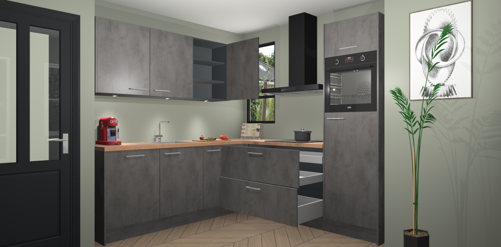 Koken wordt nooit meer hetzelfde met de aanwinst van de Beton Antraciet keuken Johannesburg! In deze moderne keuken ervaring zal u genieten van alle elementen die nieuwe kansen bieden om op een andere manier te koken. Met eeuwigdurende stijl en generieke opslagruimte zal u geen moment vervelendekomen als u in uw keuken bent. De deuren bevatten een comfortabele soft-close functie, waardoor er minder gehannes is bij elk gebruik.
