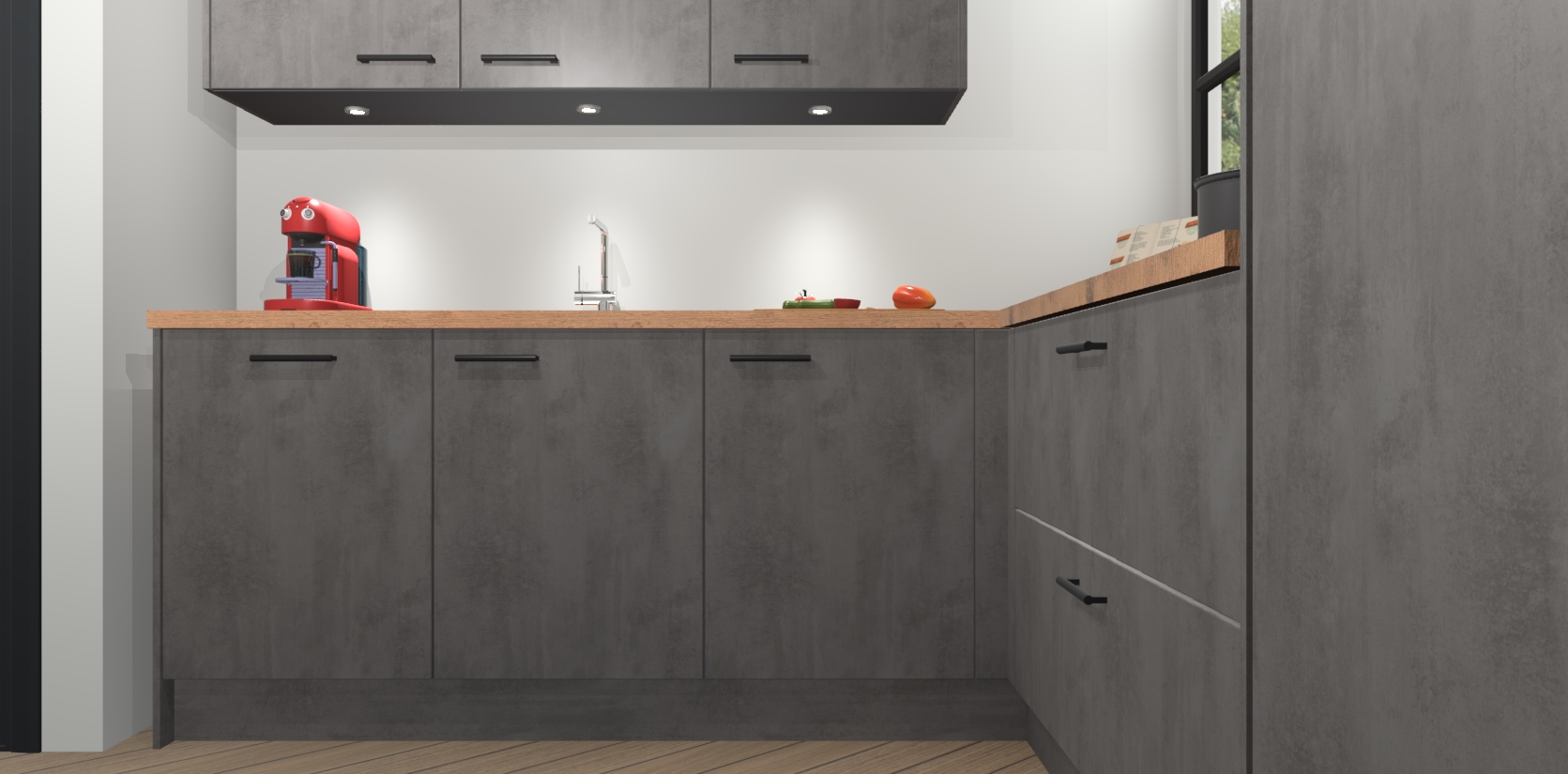 Inclusief plinten, stelpoten en werkblad