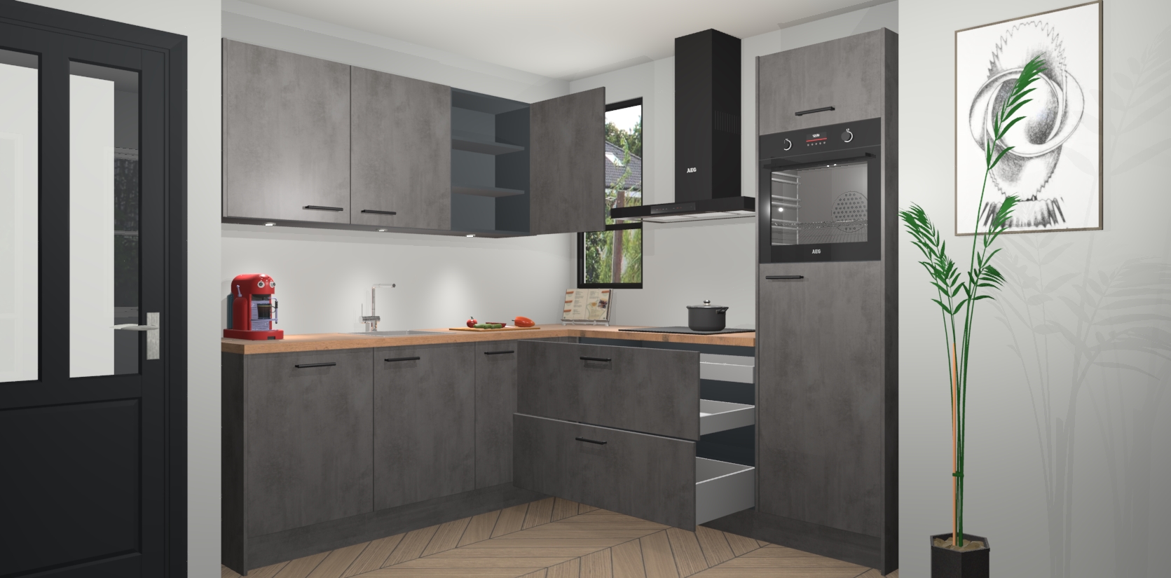 Als extra werd de prijs zo laag mogelijk vastgesteld, zonder aan de kwaliteit te raken. Zo heb je gegarandeerde Duitse keukenkwaliteit waarmee je jarenlang plezier beleeft aan het ontwerp. En dat alles wordt gecombineerd met een supersnelle service van maar liefst 7 weken!