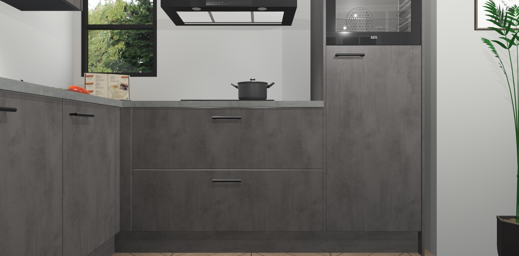 Inclusief plinten, stelpoten en werkblad