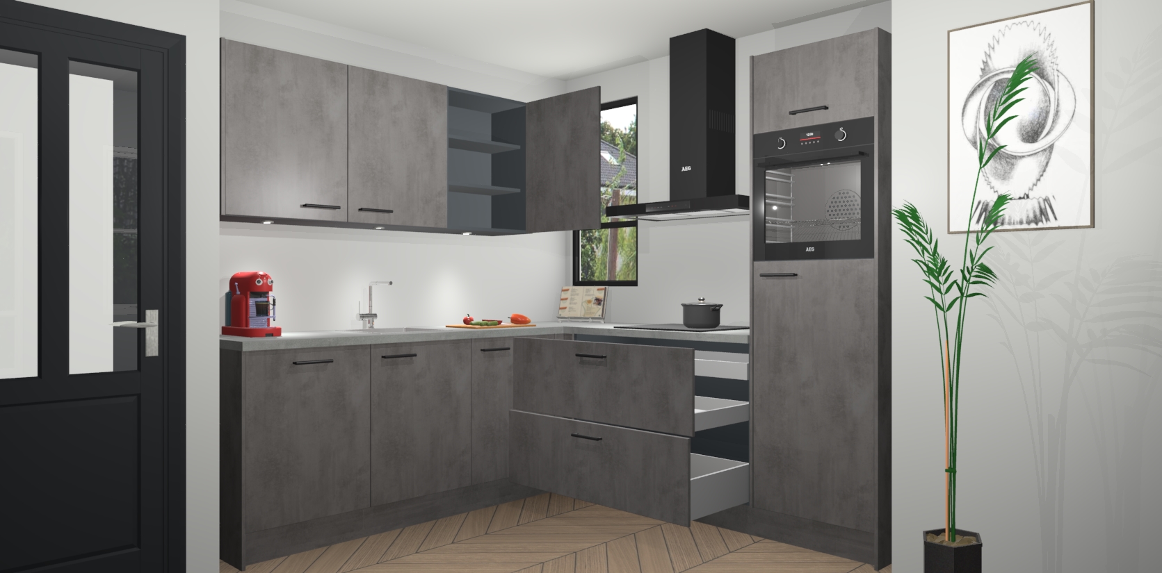 Als extra werd de prijs zo laag mogelijk vastgesteld, zonder aan de kwaliteit te raken. Zo heb je gegarandeerde Duitse keukenkwaliteit waarmee je jarenlang plezier beleeft aan het ontwerp. En dat alles wordt gecombineerd met een supersnelle service van maar liefst 7 weken!