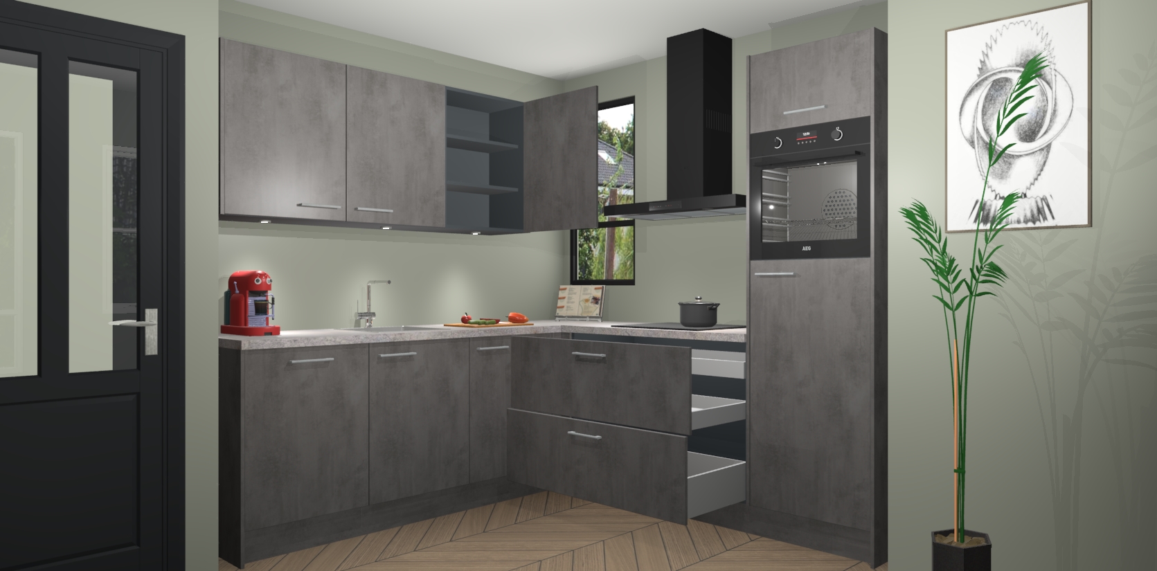 Koken wordt nooit meer hetzelfde met de aanwinst van de Beton Antraciet keuken Johannesburg! In deze moderne keuken ervaring zal u genieten van alle elementen die nieuwe kansen bieden om op een andere manier te koken. Met eeuwigdurende stijl en generieke opslagruimte zal u geen moment vervelendekomen als u in uw keuken bent. De deuren bevatten een comfortabele soft-close functie, waardoor er minder gehannes is bij elk gebruik.