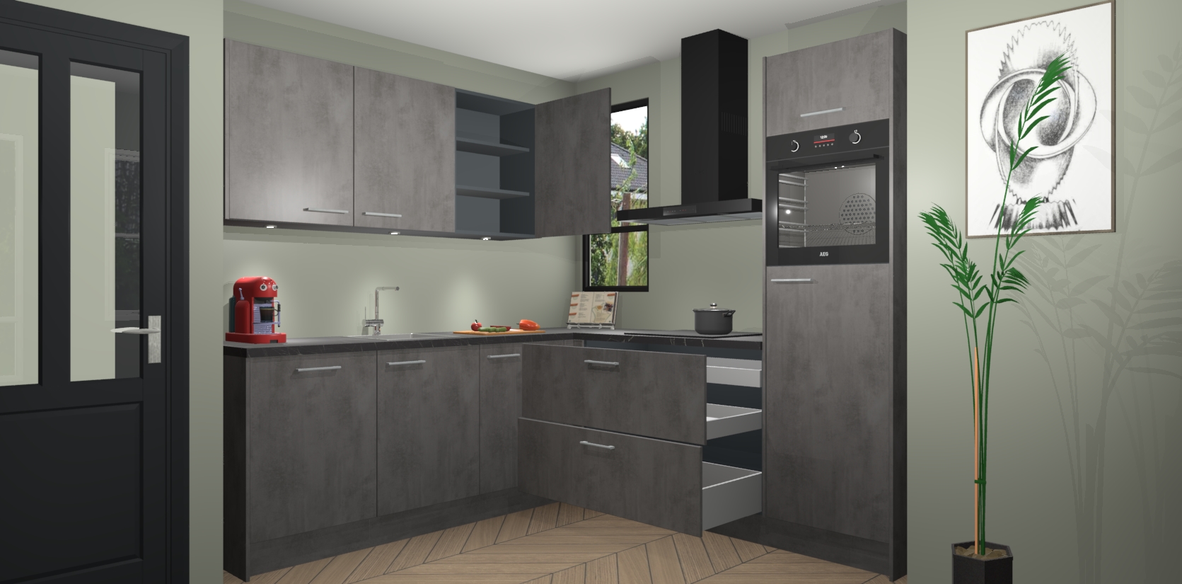Koken wordt nooit meer hetzelfde met de aanwinst van de Beton Antraciet keuken Johannesburg! In deze moderne keuken ervaring zal u genieten van alle elementen die nieuwe kansen bieden om op een andere manier te koken. Met eeuwigdurende stijl en generieke opslagruimte zal u geen moment vervelendekomen als u in uw keuken bent. De deuren bevatten een comfortabele soft-close functie, waardoor er minder gehannes is bij elk gebruik.