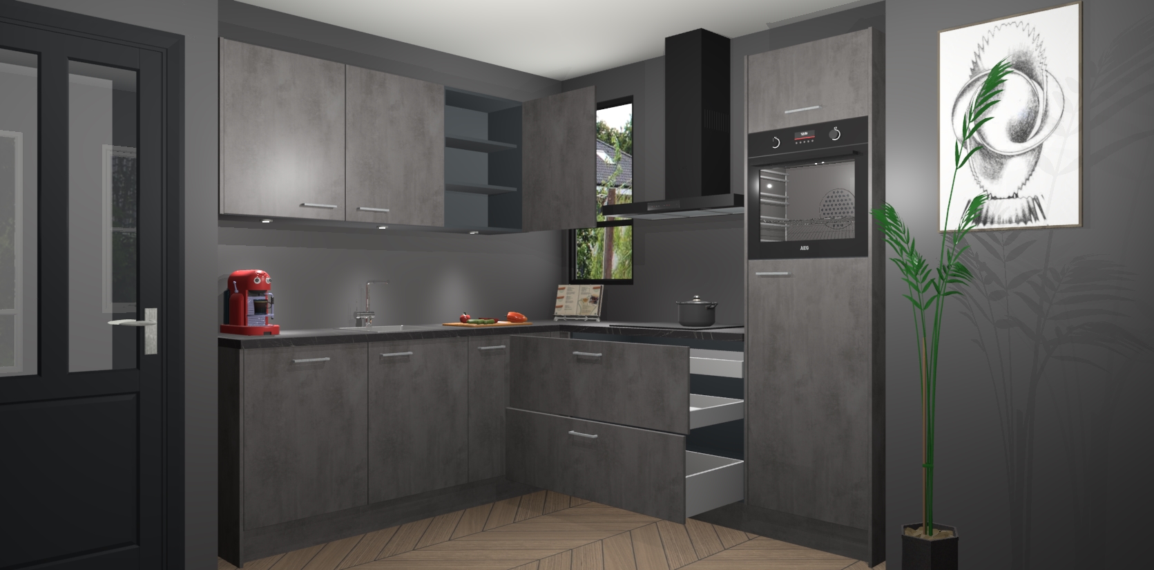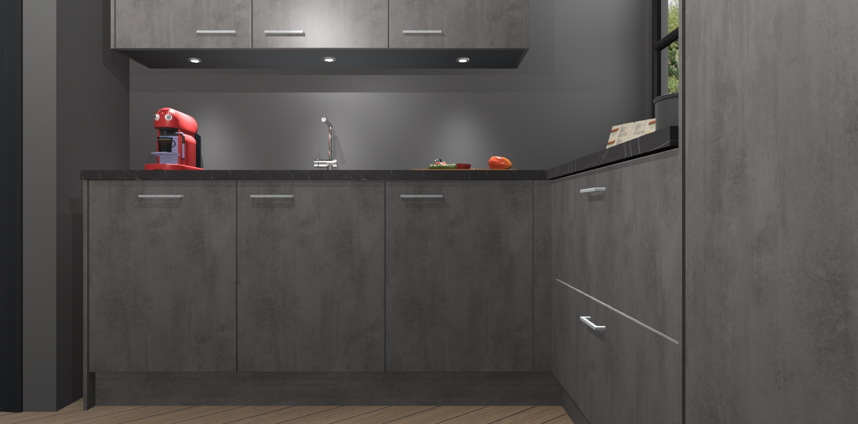 Koken wordt nooit meer hetzelfde met de aanwinst van de Beton Antraciet keuken Johannesburg! In deze moderne keuken ervaring zal u genieten van alle elementen die nieuwe kansen bieden om op een andere manier te koken. Met eeuwigdurende stijl en generieke opslagruimte zal u geen moment vervelendekomen als u in uw keuken bent. De deuren bevatten een comfortabele soft-close functie, waardoor er minder gehannes is bij elk gebruik.
