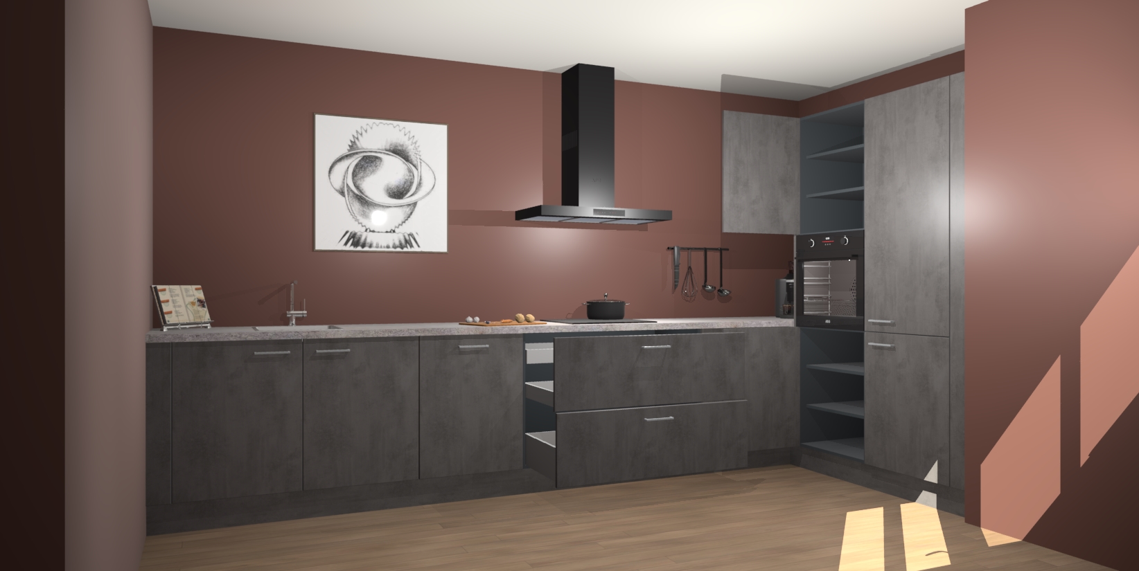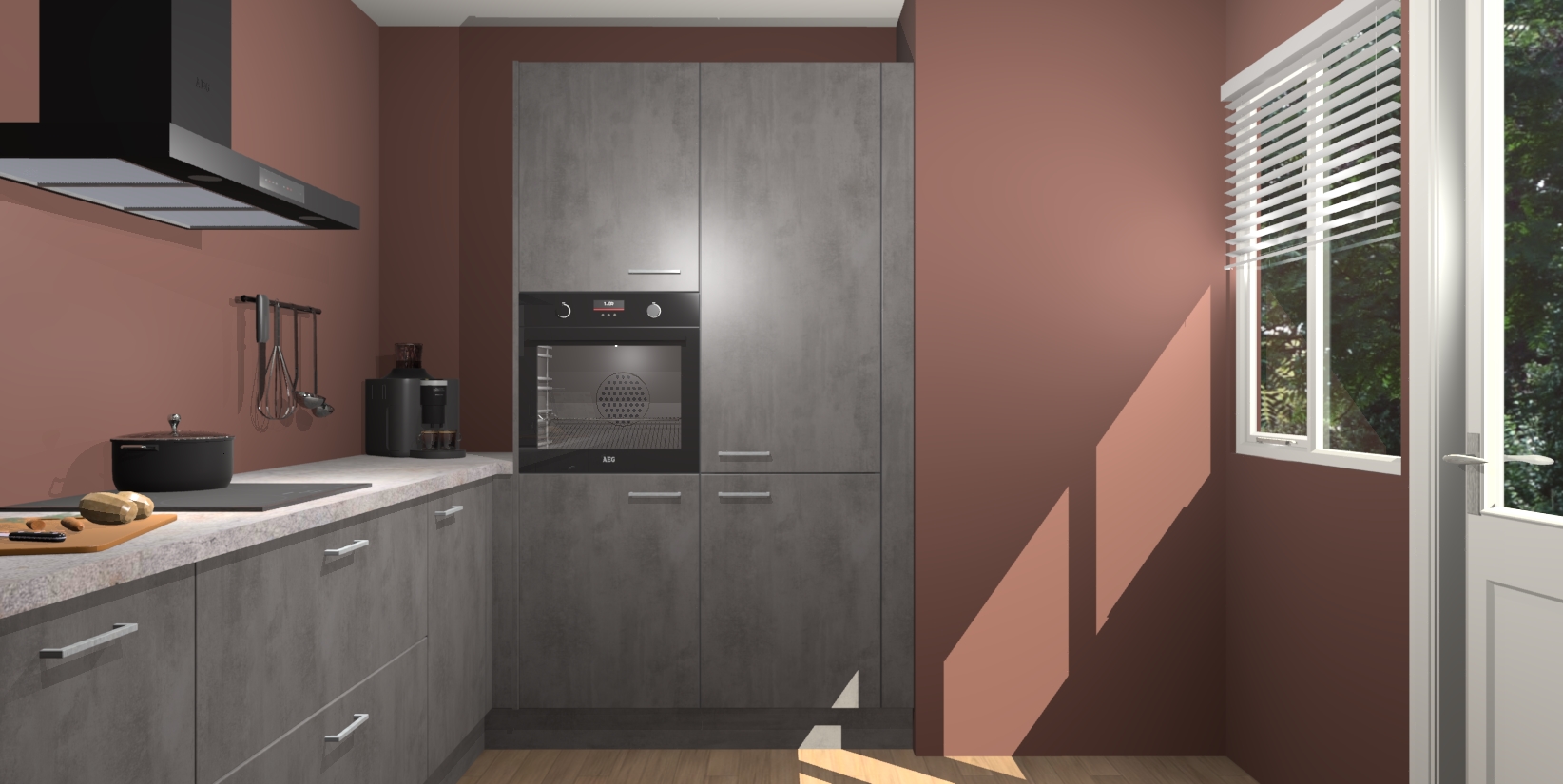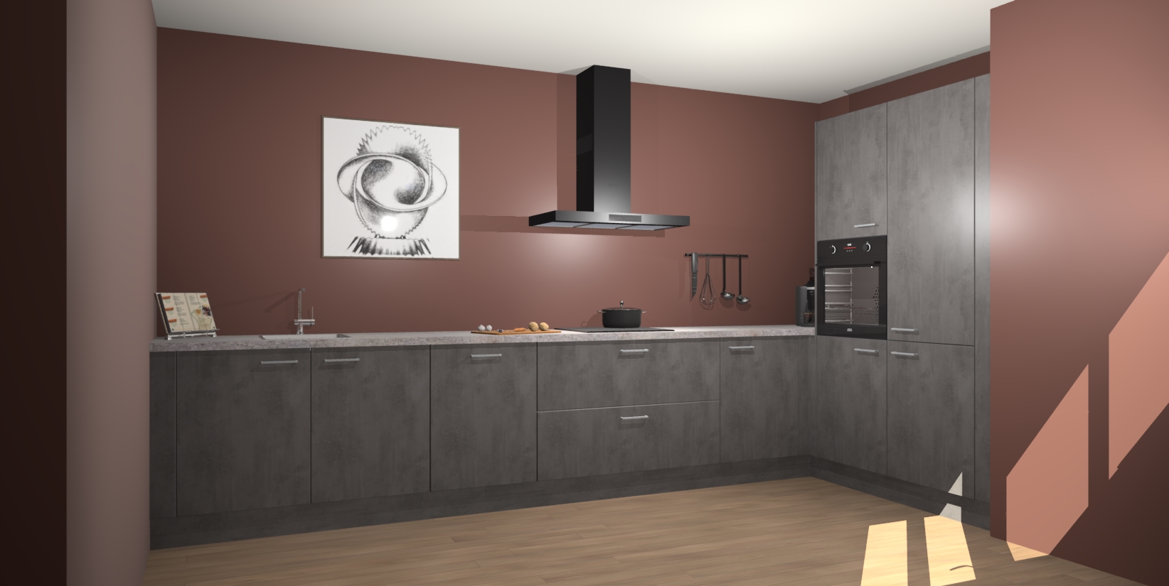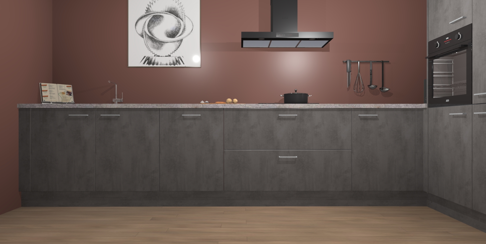 Welkom bij de Beton Antraciet keuken Khao Lak. Deze prachtige keuken zal de komende jaren het middelpunt van de belangstelling in uw huis zijn. Uitgerust met vijf inbouwapparaten komt u nooit kookgereedschap tekort. Bovendien geeft de warme houtlook elke ruimte een uitnodigende en tijdloze uitstraling.