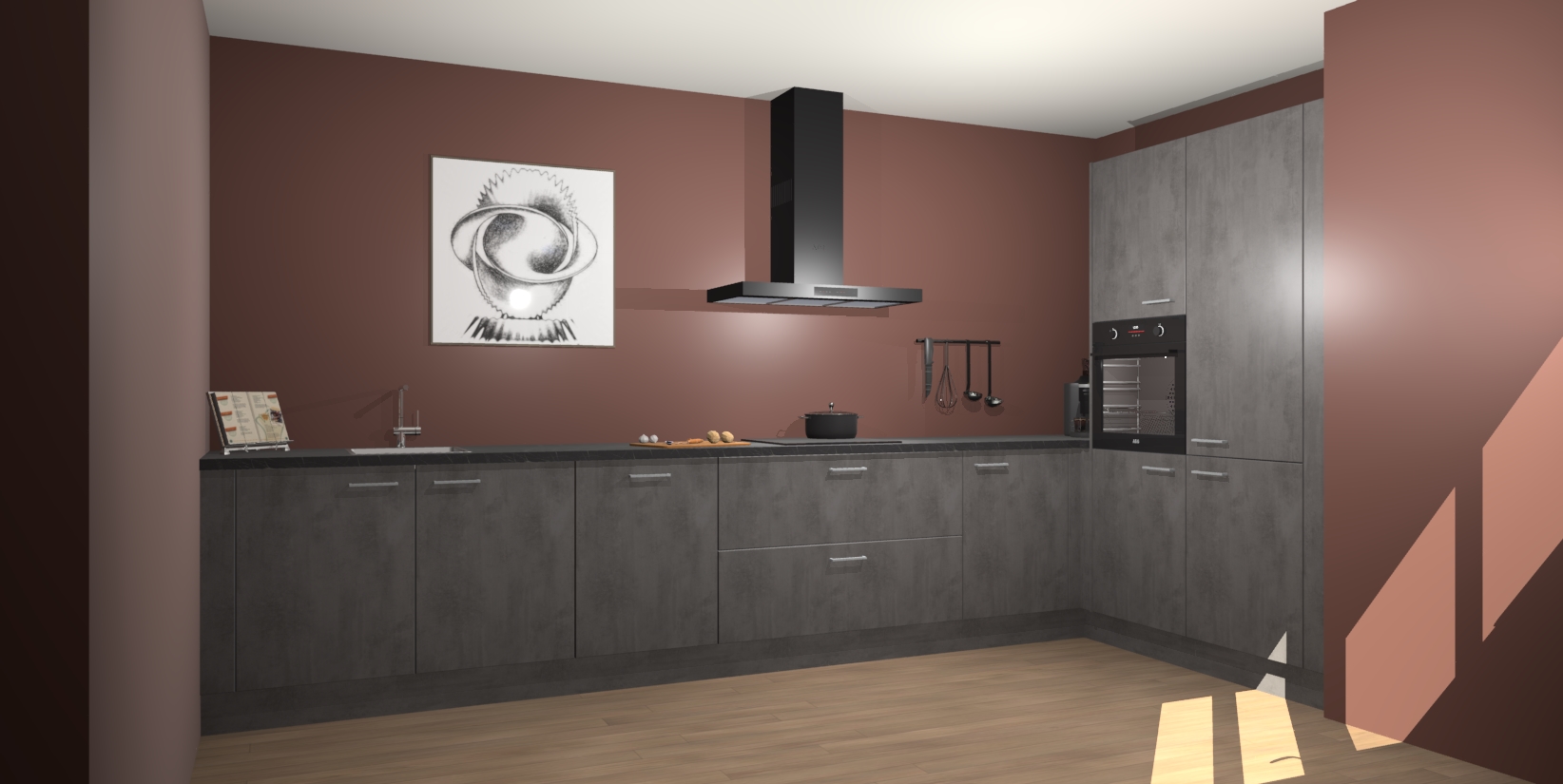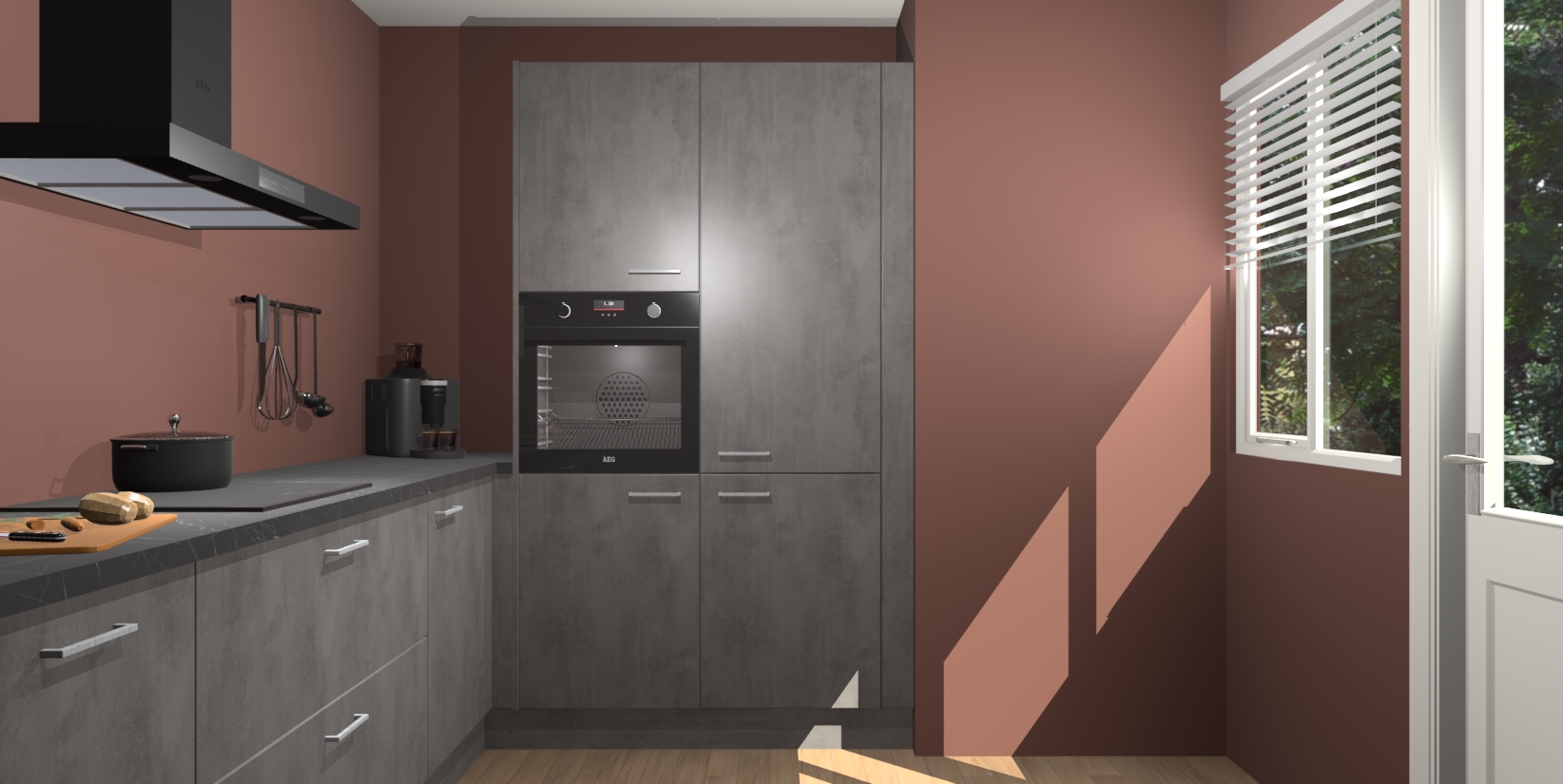 Welkom bij de Beton Antraciet keuken Khao Lak. Deze prachtige keuken zal de komende jaren het middelpunt van de belangstelling in uw huis zijn. Uitgerust met vijf inbouwapparaten komt u nooit kookgereedschap tekort. Bovendien geeft de warme houtlook elke ruimte een uitnodigende en tijdloze uitstraling.