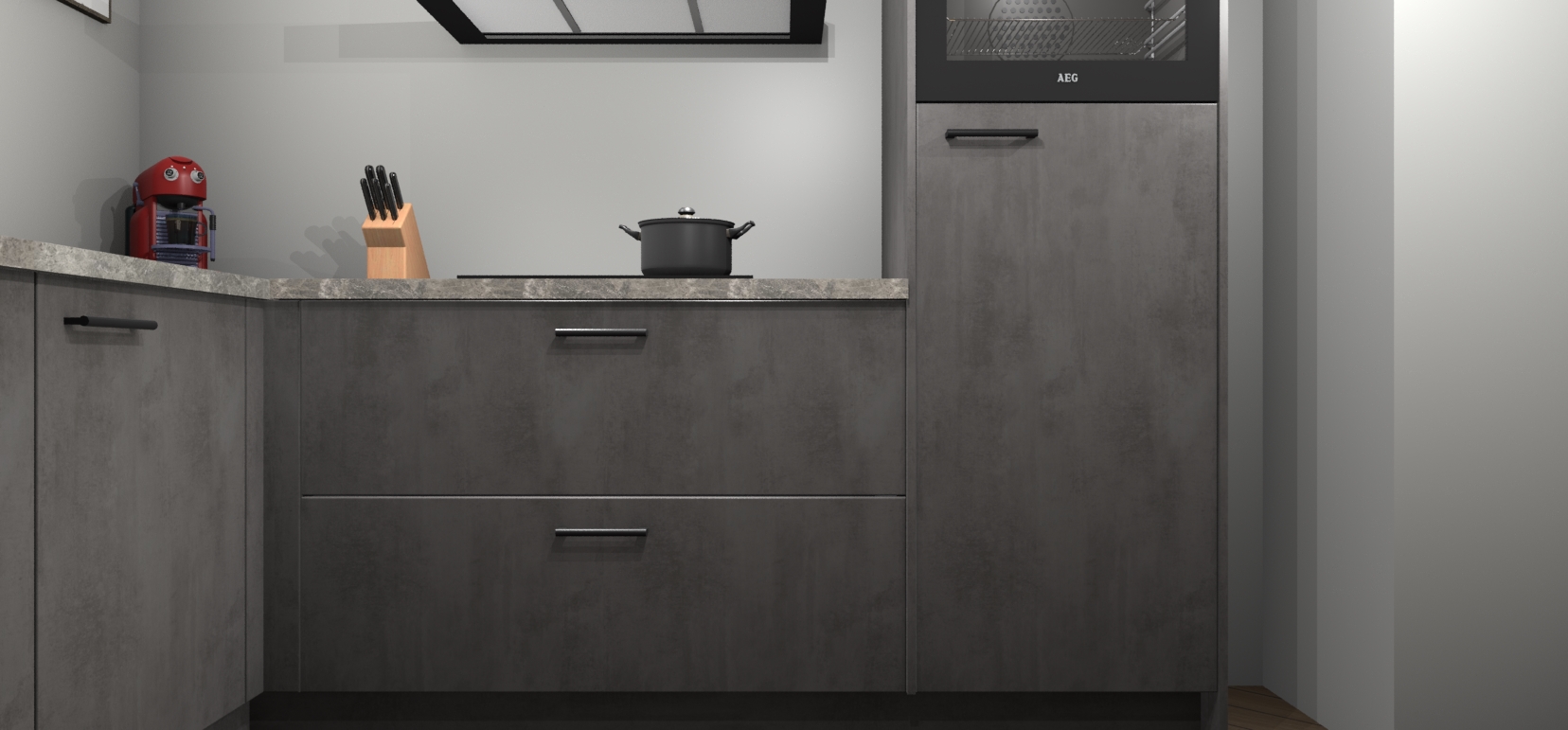 Inclusief plinten, stelpoten en werkblad