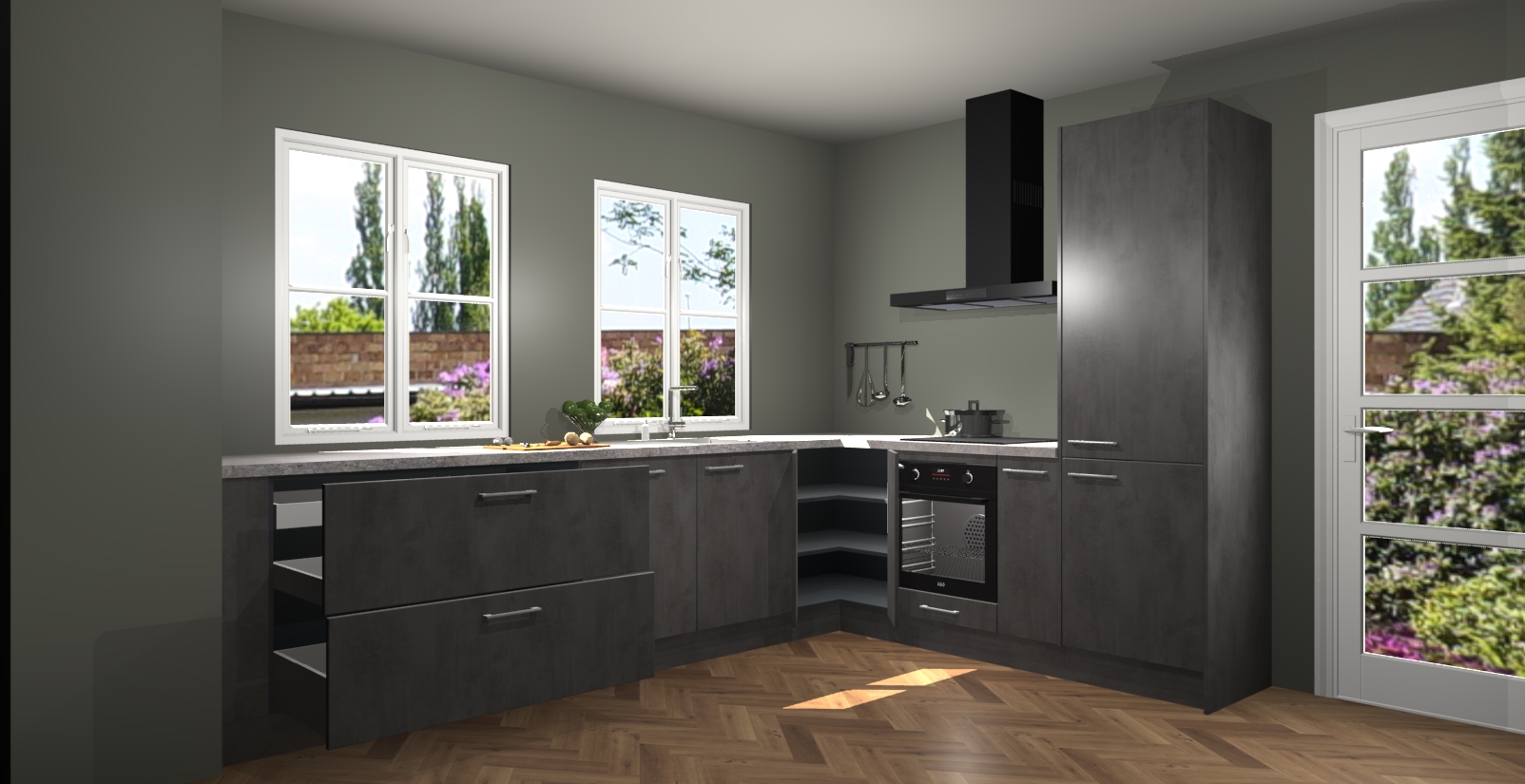 En dat is nog niet alles! U kunt bij uw bestelling ook uw keuken makkelijk upgraden naar AEG apparatuur. Alles wat u nodig heeft om te koken - meteen vanaf het begin! Met zo'n uitstekend pakket is het geen verrassing dat de Beton Antraciet keuken Konin een van onze populairste producten is!